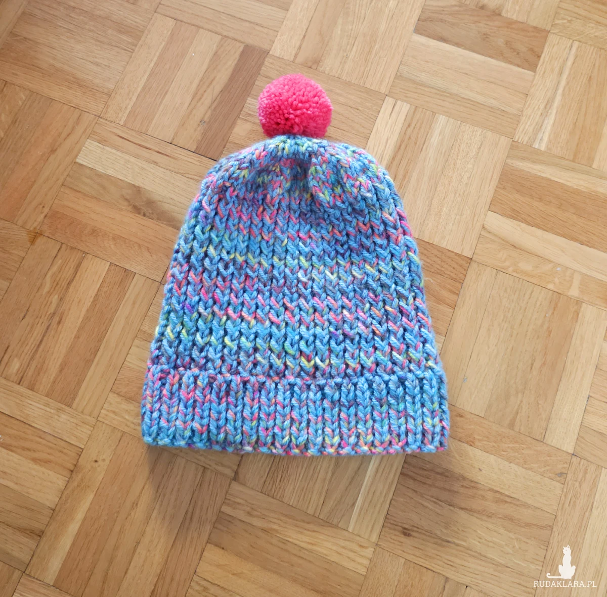 Czapka wykonana ręcznie na drutach z tureckich włóczek.
