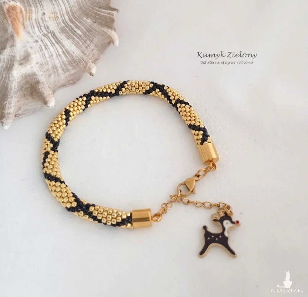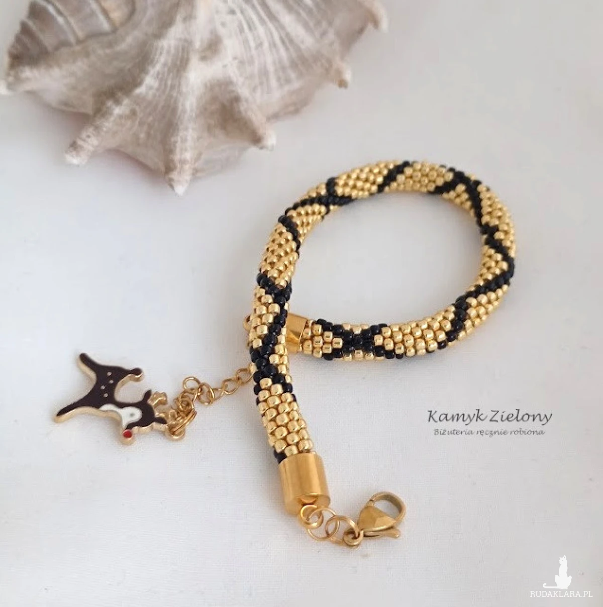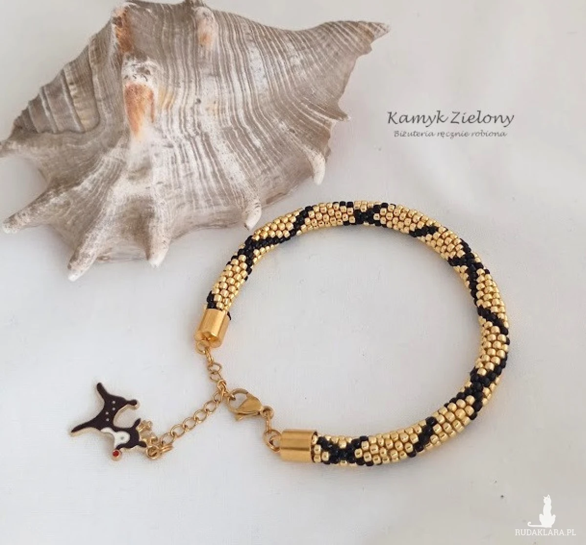 Bransoletka wykonana ręcznie z doskonałej jakości szklanych koralików Toho w kolorze złotym i czarnym. Do jej wykonania wykorzystane zostały najwyższej jakości koraliki z warstwą złotego koloru naniesioną fabrycznie metodą galwanizowania.