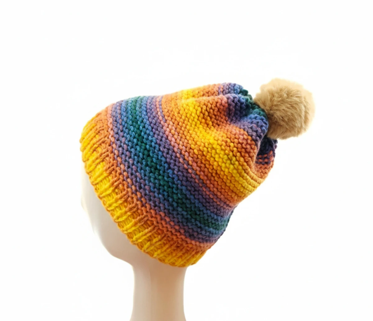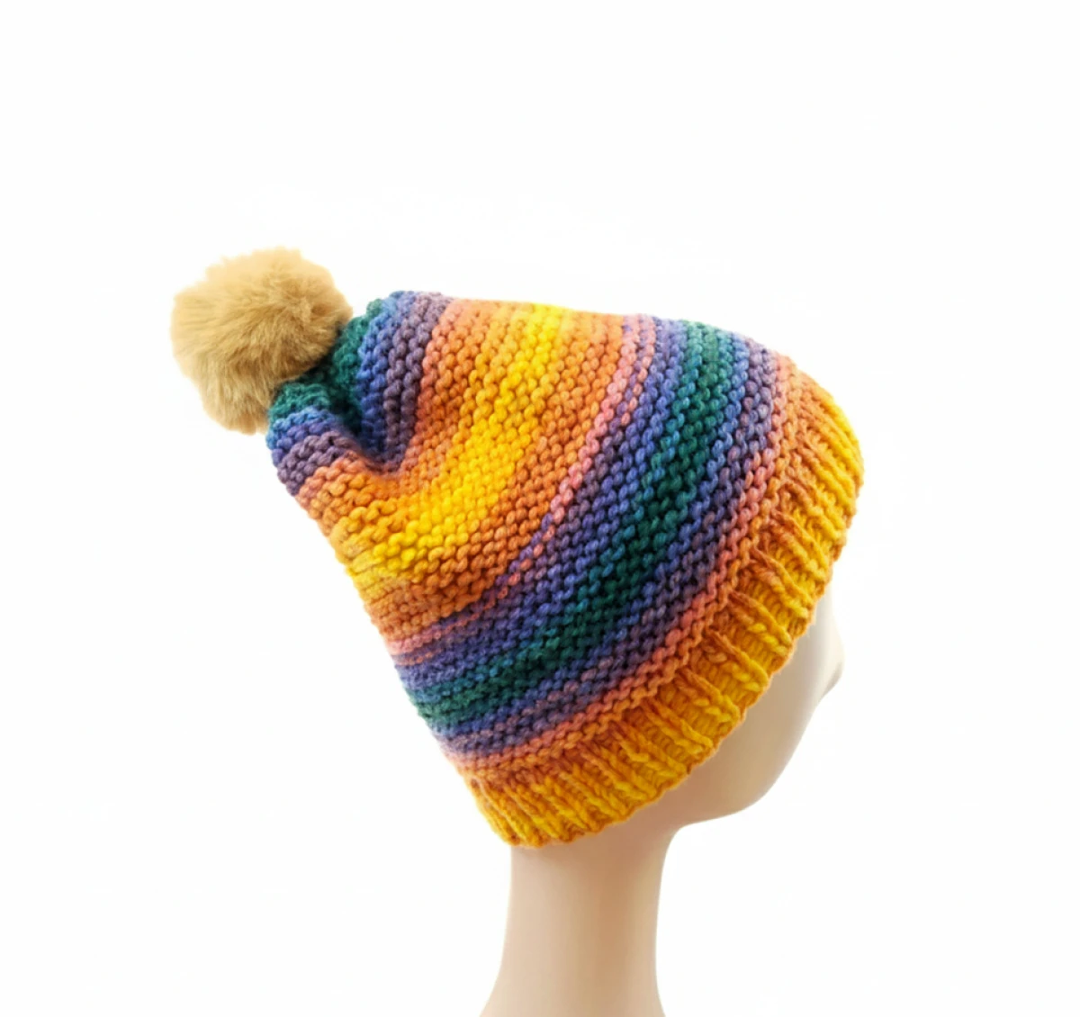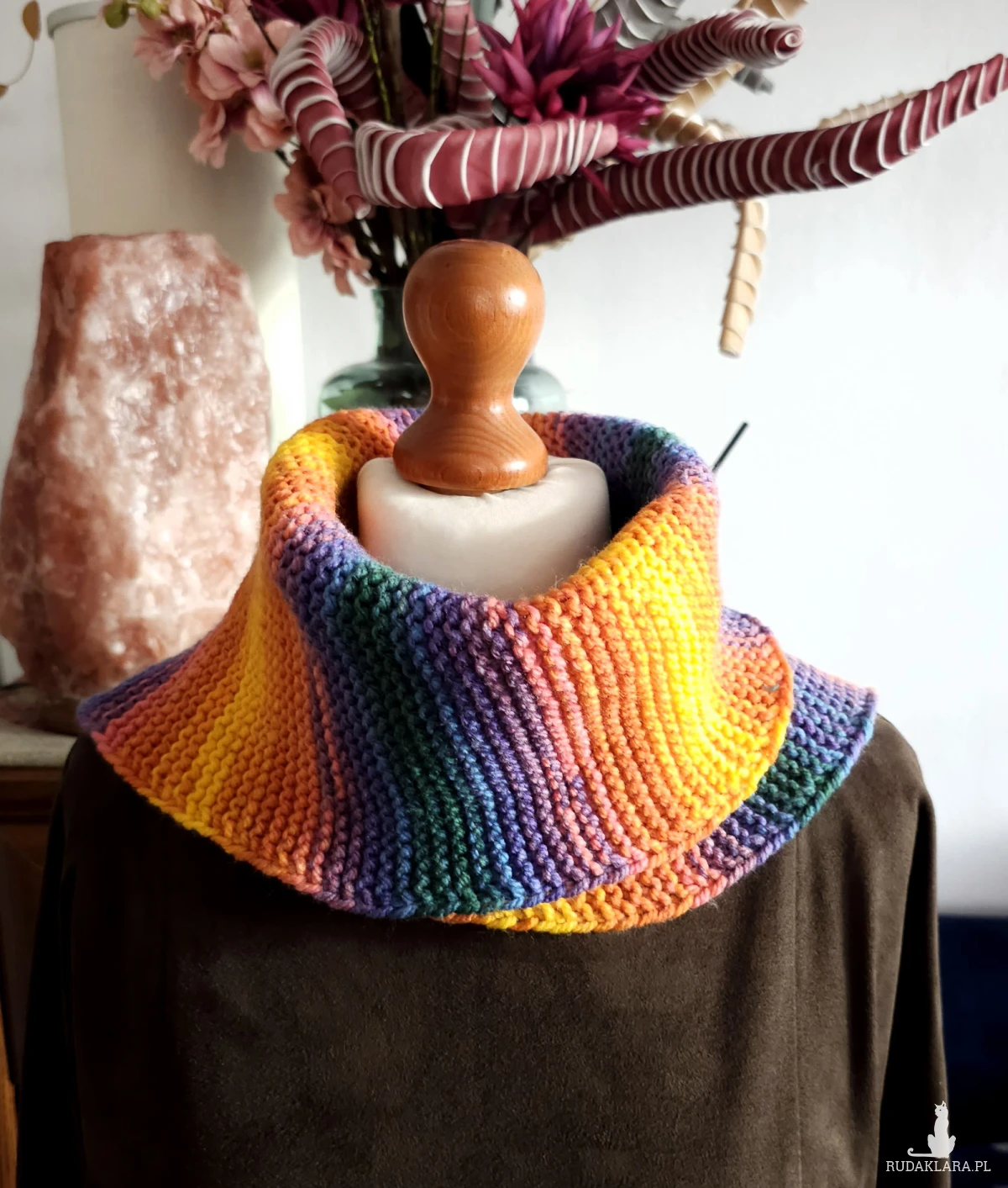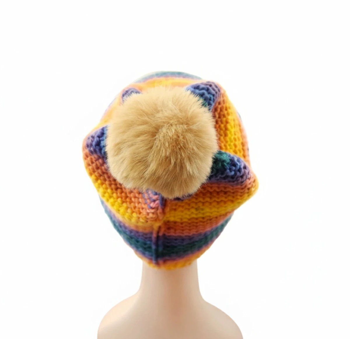 6915 Zimowy Zestaw: Czapka Beanie i Komin w Kolorowe Paski (Zachód Słońca)