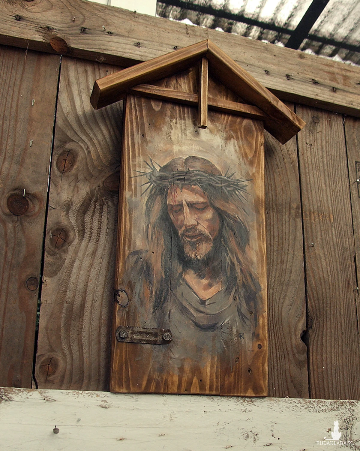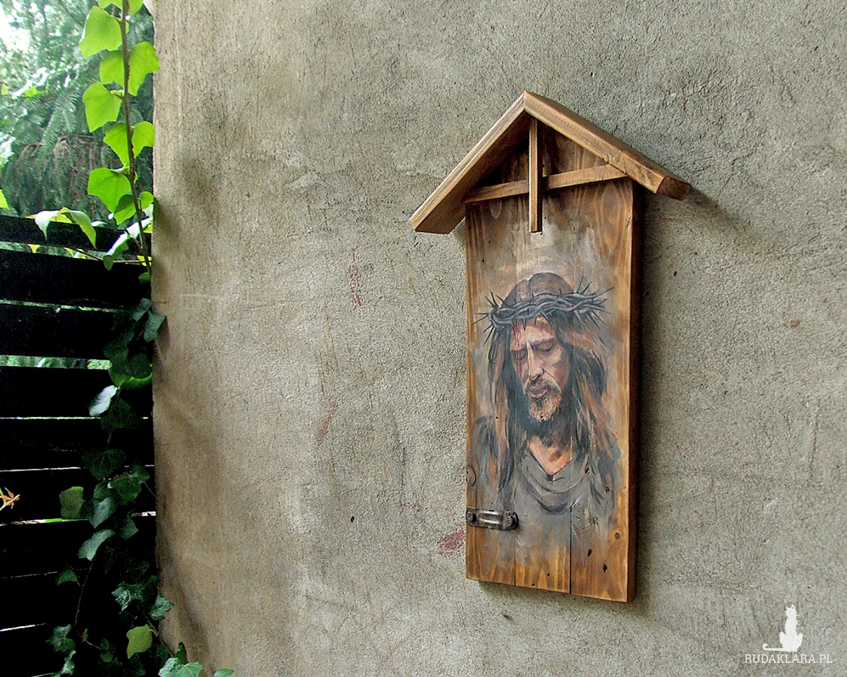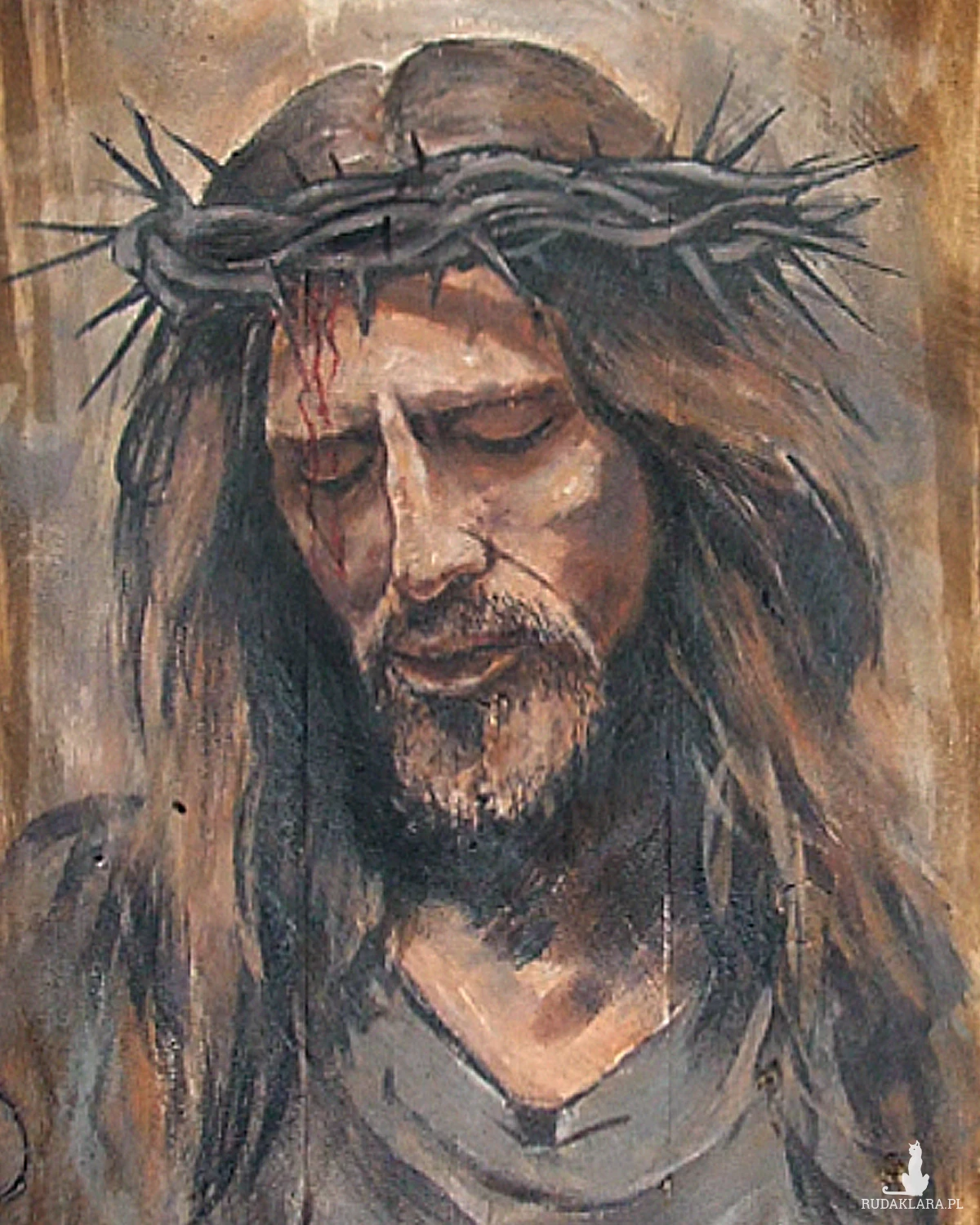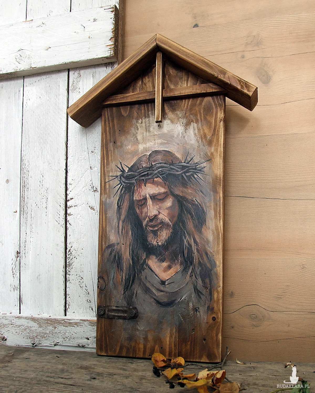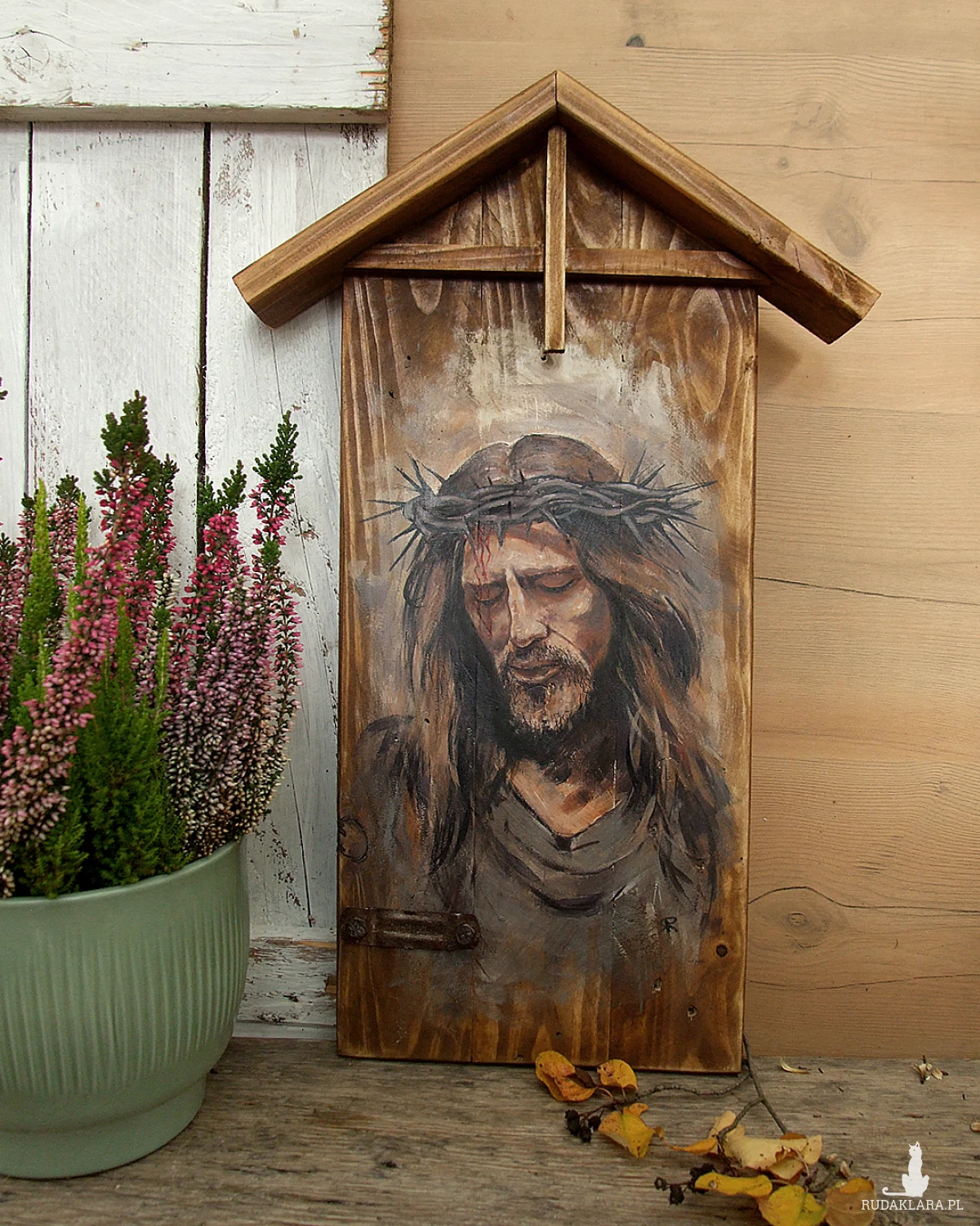 Chrystus w cierniowej koronie - obraz malowany na starych deskach.