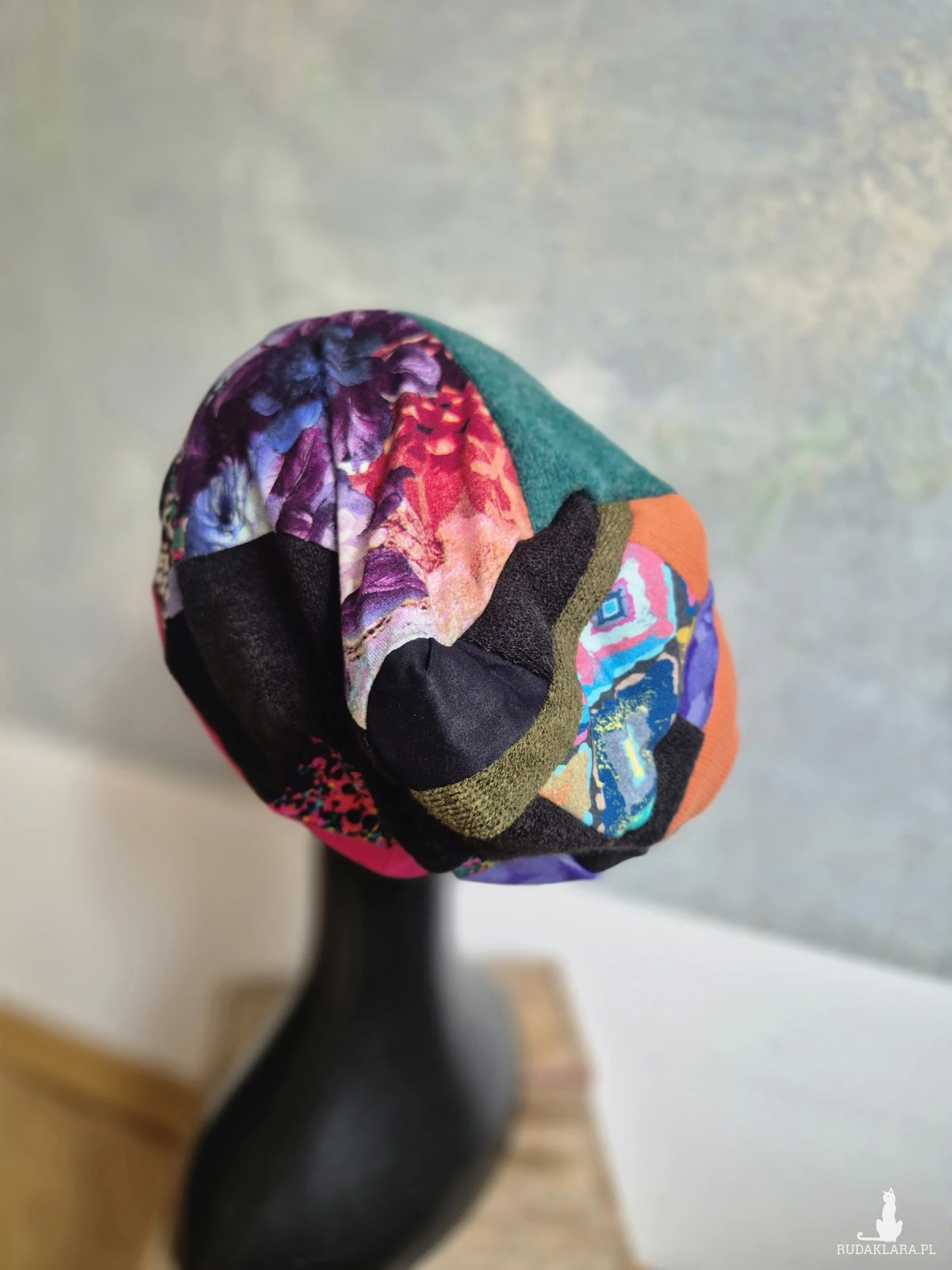 Czapka na podszewce kolorowa patchworkowa rękodzieło świetna na codzienne noszenie polecam rozmiar uniwersalny Box f1