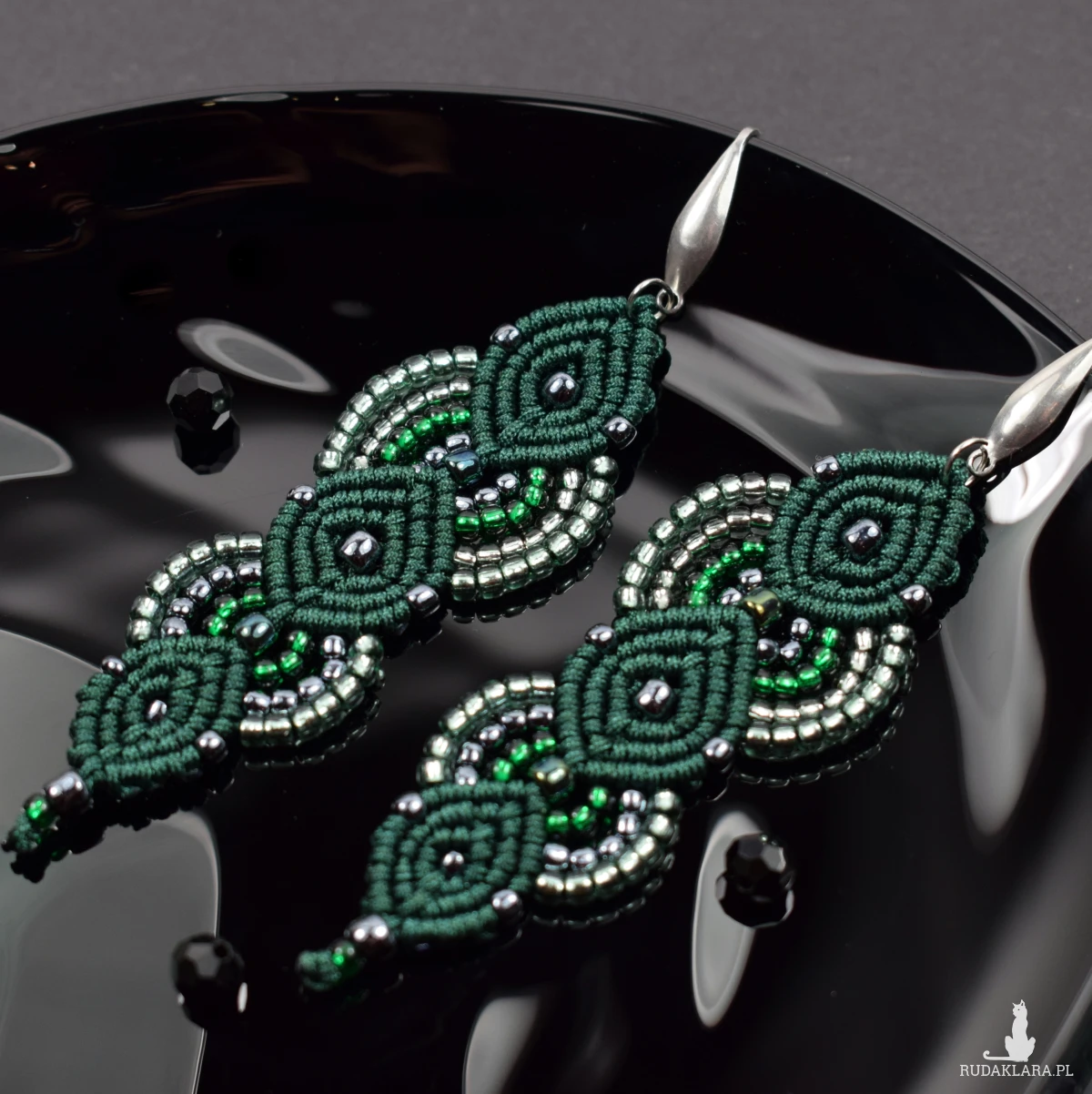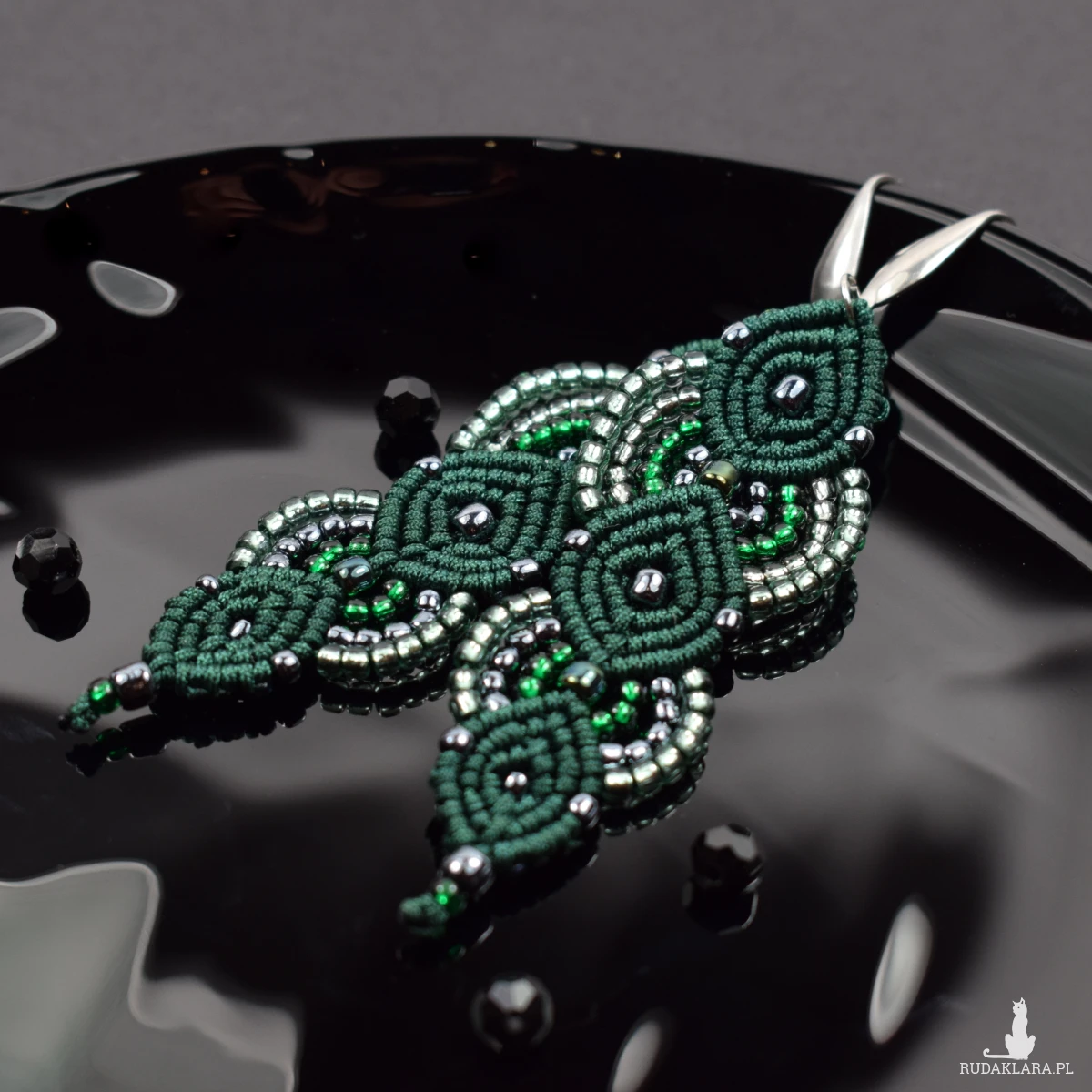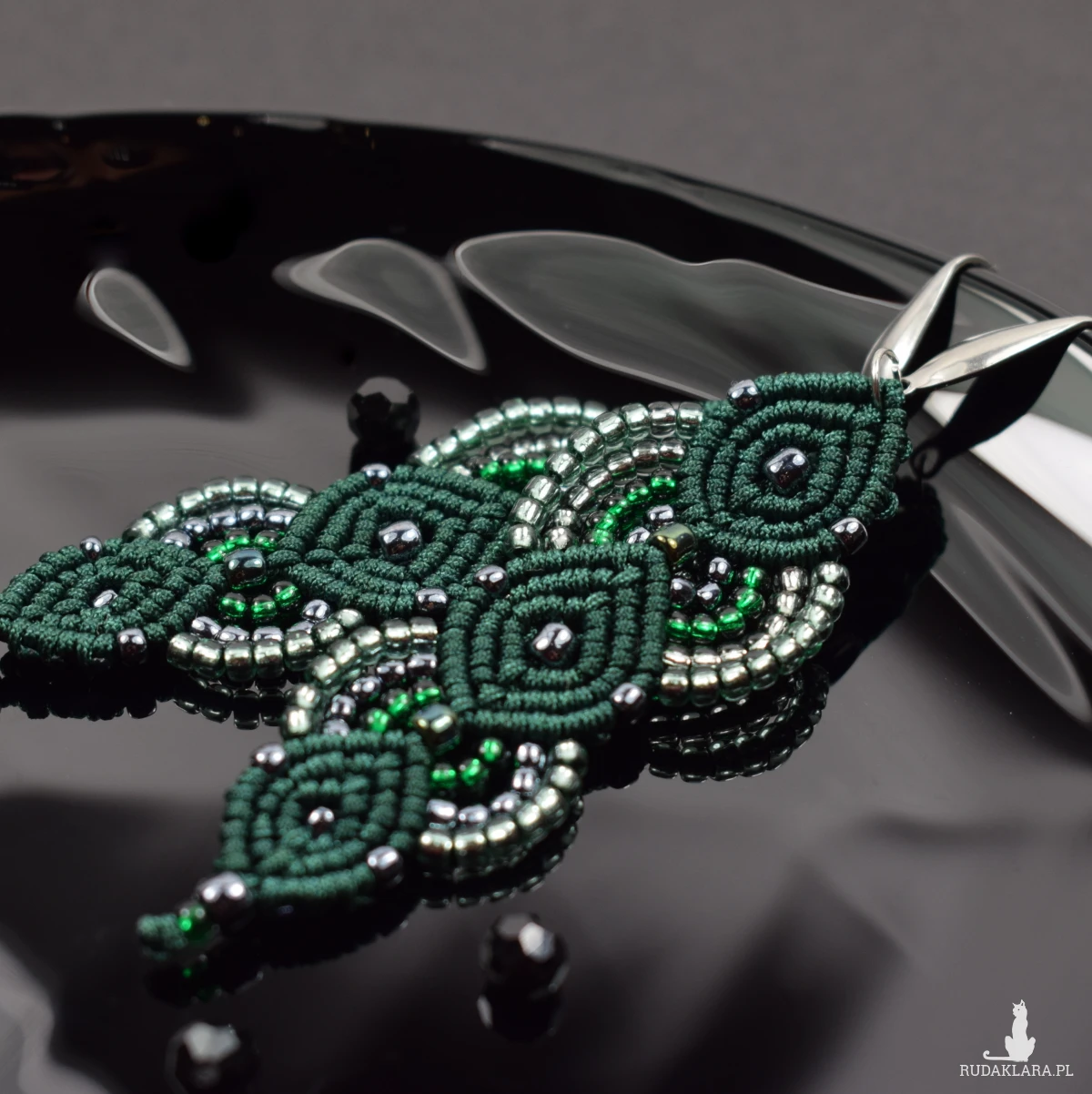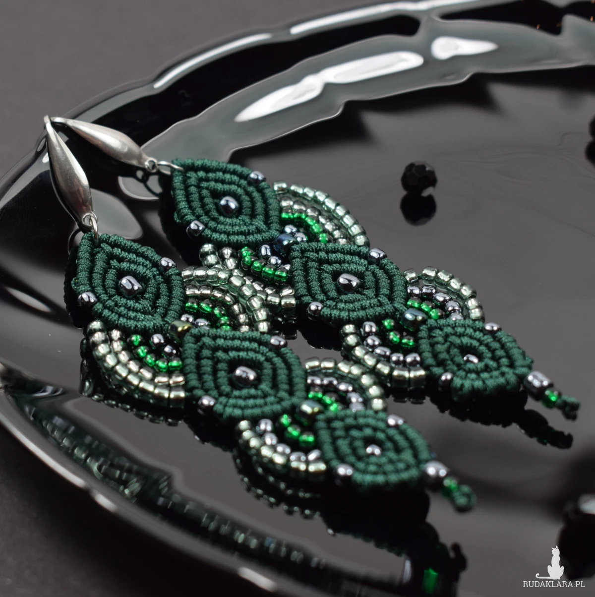koralikami w tonacjach srebra, szmaragdu i zieleni, które pięknie