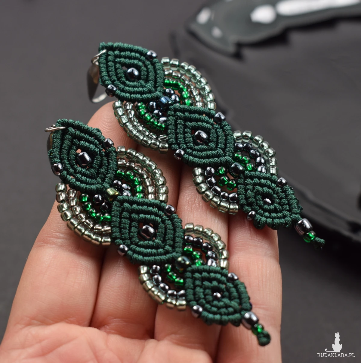 Ręcznie wykonane kolczyki stworzone techniką makramy z profesjonalnego