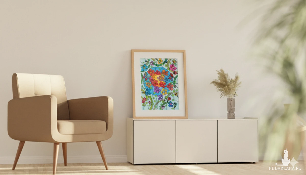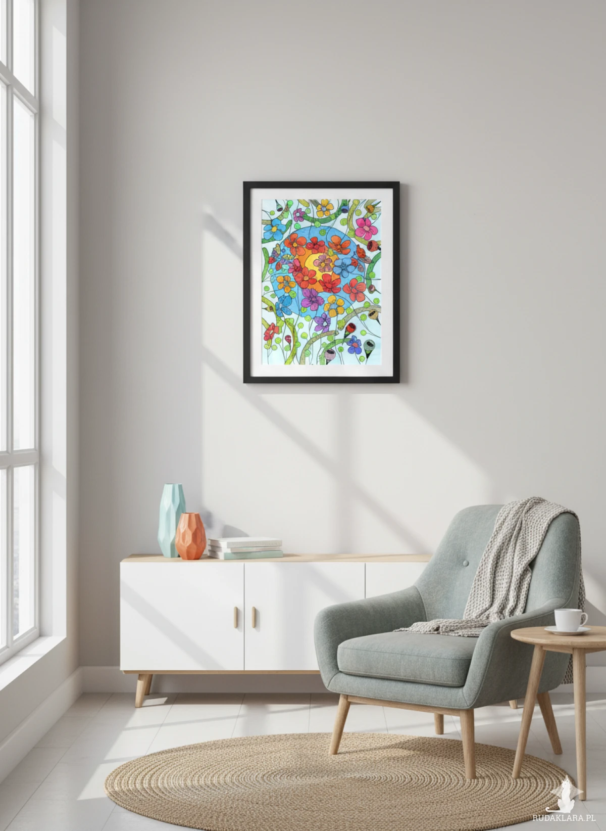 Wydruk autorskiego rysunku na satynowym papierze o gramaturze 200g/m2 - sprzedawany bez ramki - rysunki w ramkach na zdjęciach to wizualizacje.