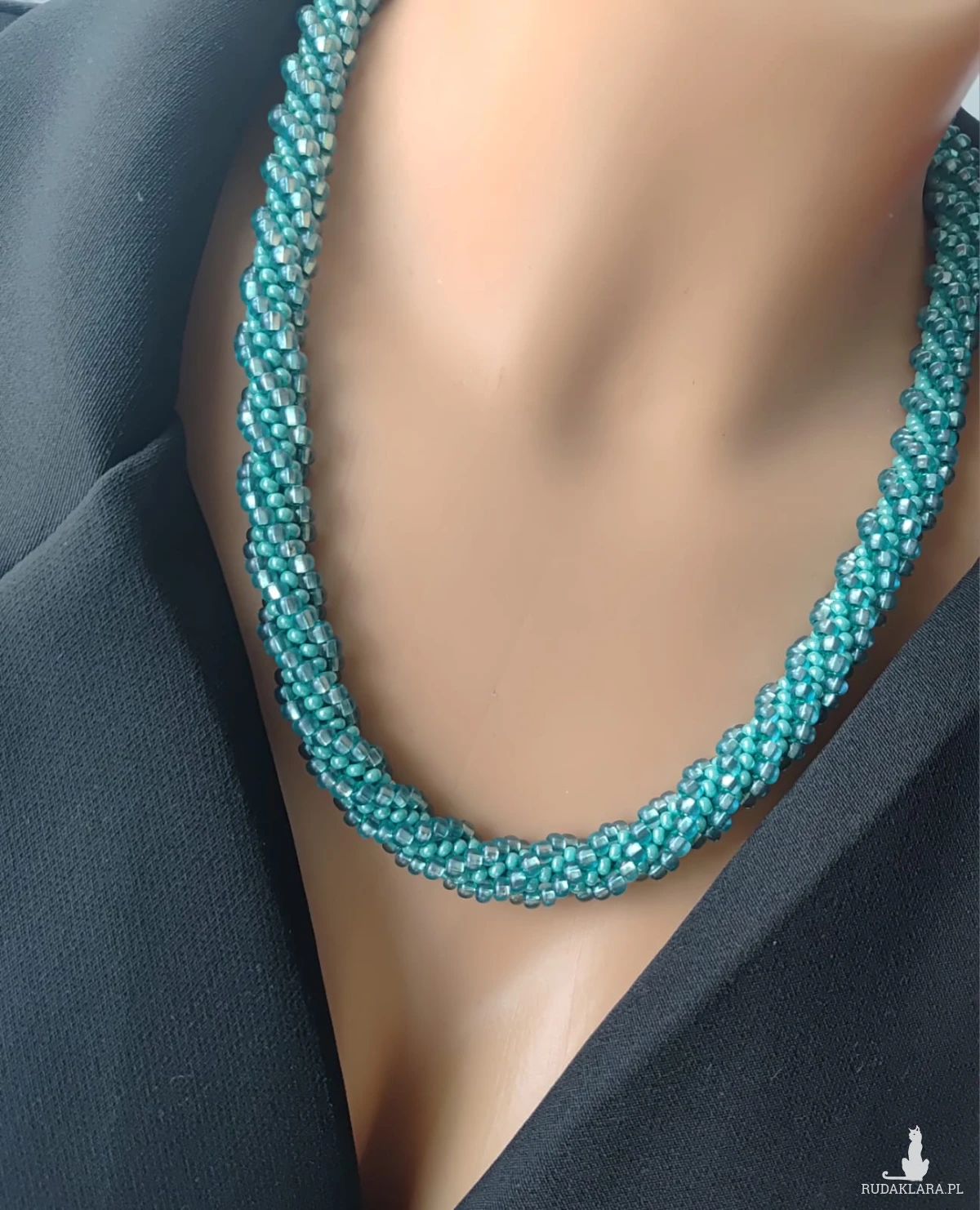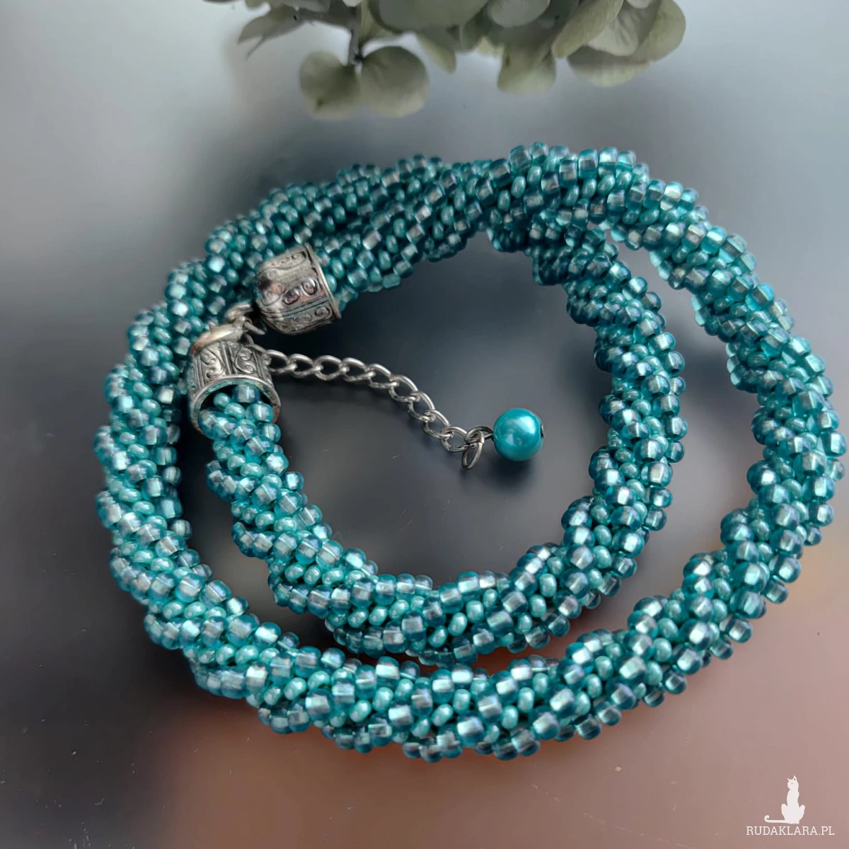 Sznur wypleciony z koralików szklanych. Piękne błyszczące koraliki w