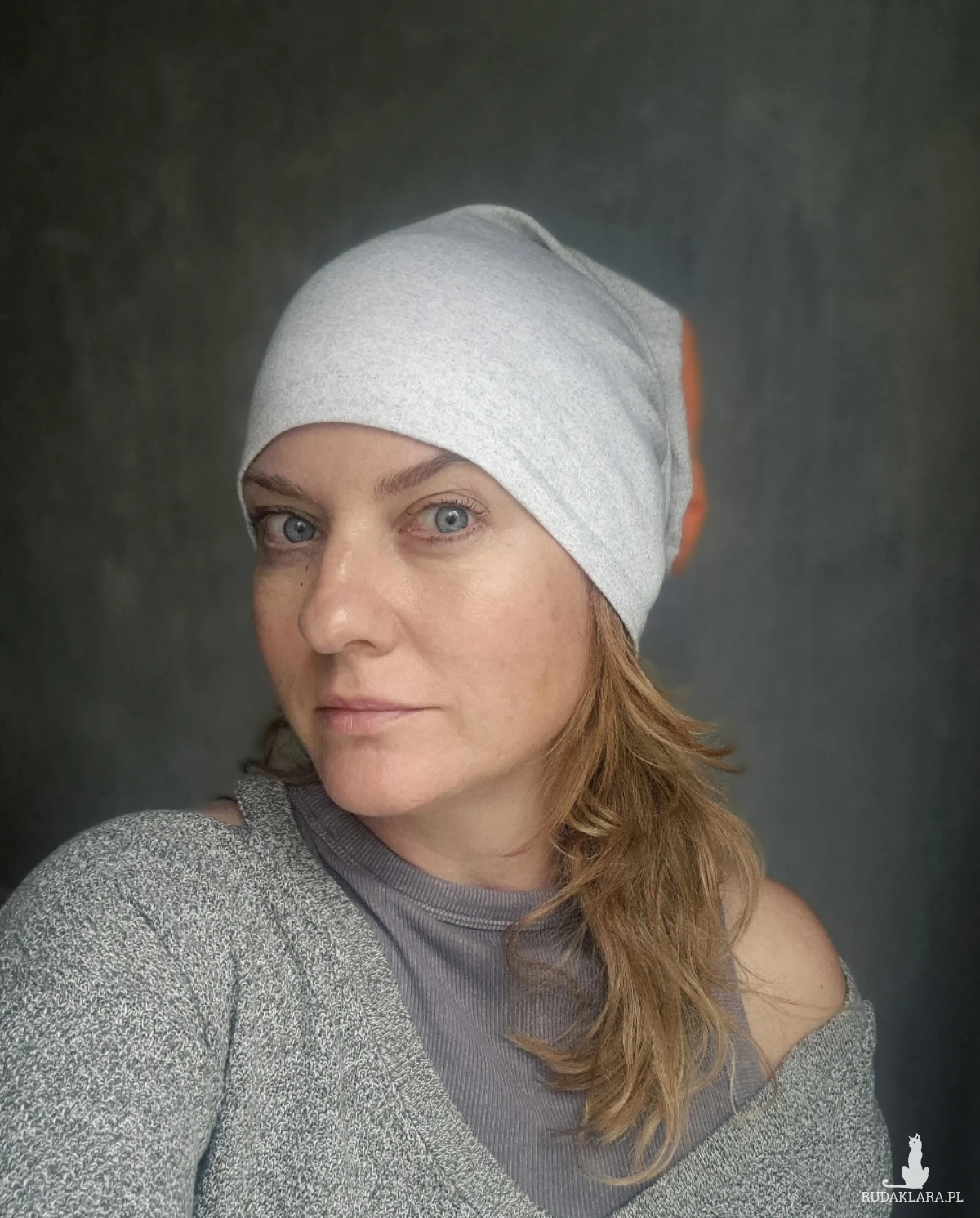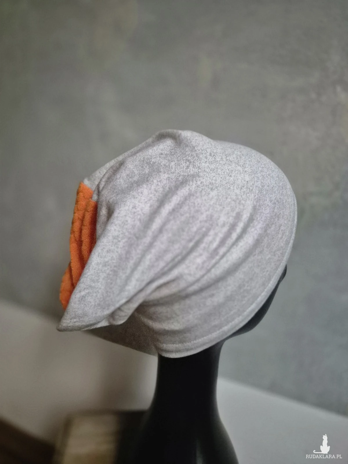 Czapka dzianinowa szaro-pomarańczowa na podszewce rozmiar M rozciągliwa świetna na codzienne noszenie polecam boks As