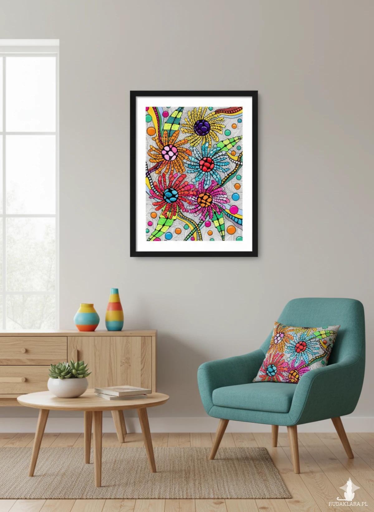 Wydruk autorskiego rysunku na satynowym papierze o gramaturze 200g/m2 - sprzedawany bez ramki - rysunki w ramkach na zdjęciach to wizualizacje.
