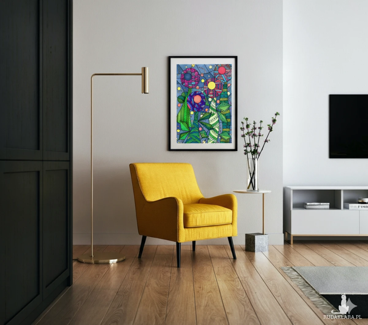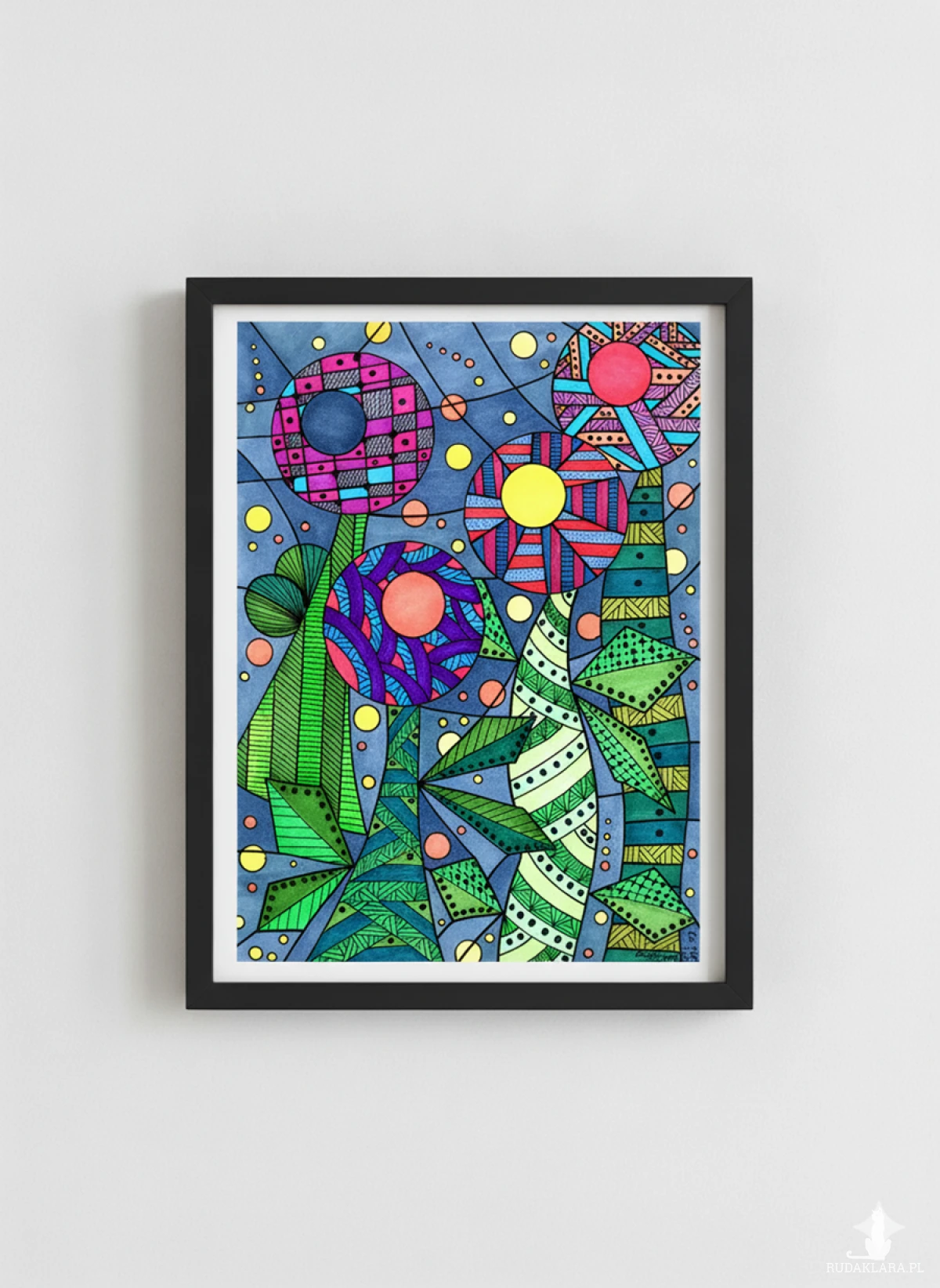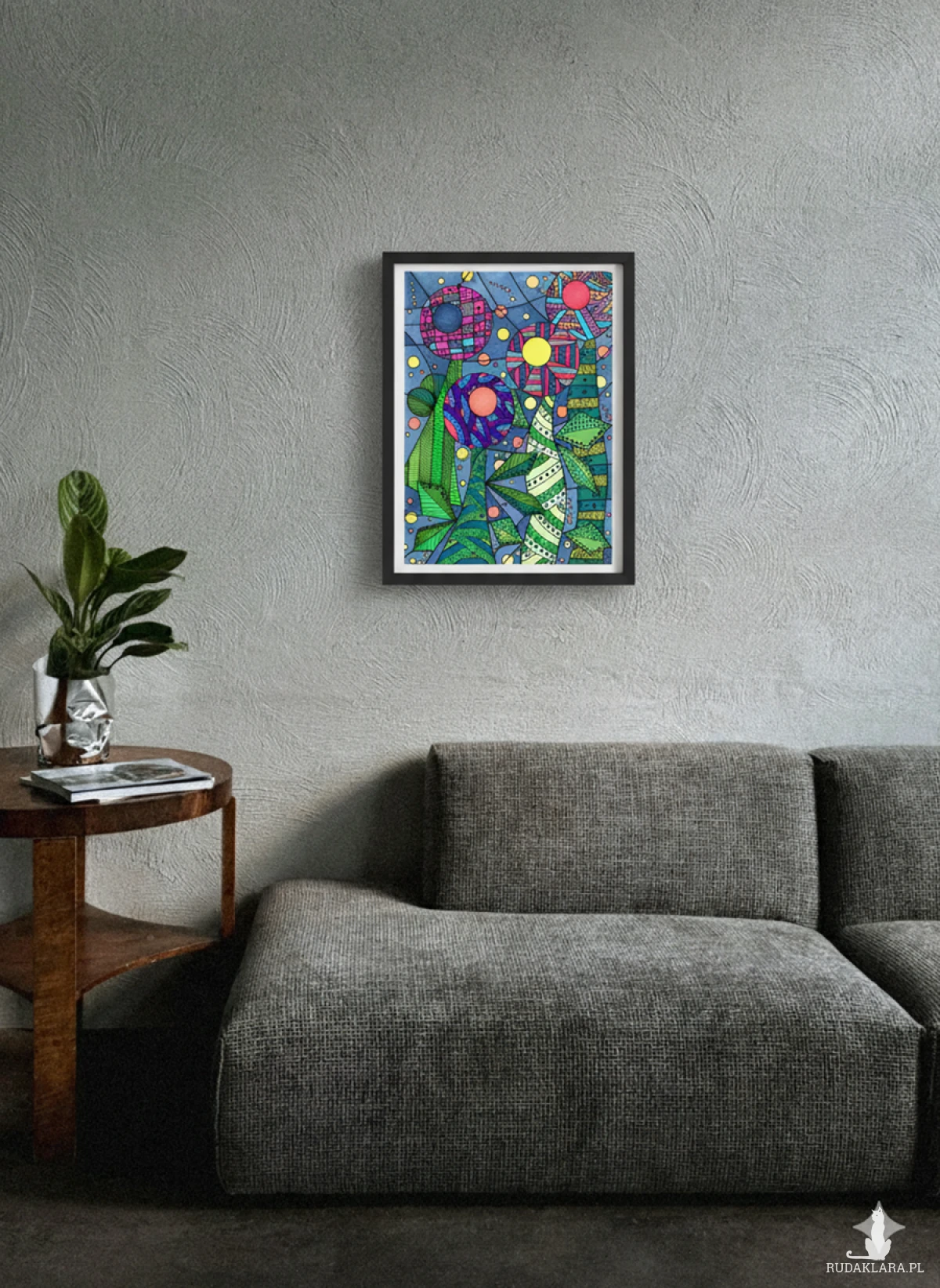 Wydruk autorskiego rysunku na satynowym papierze o gramaturze 200g/m2 - sprzedawany bez ramki - rysunki w ramkach na zdjęciach to wizualizacje.