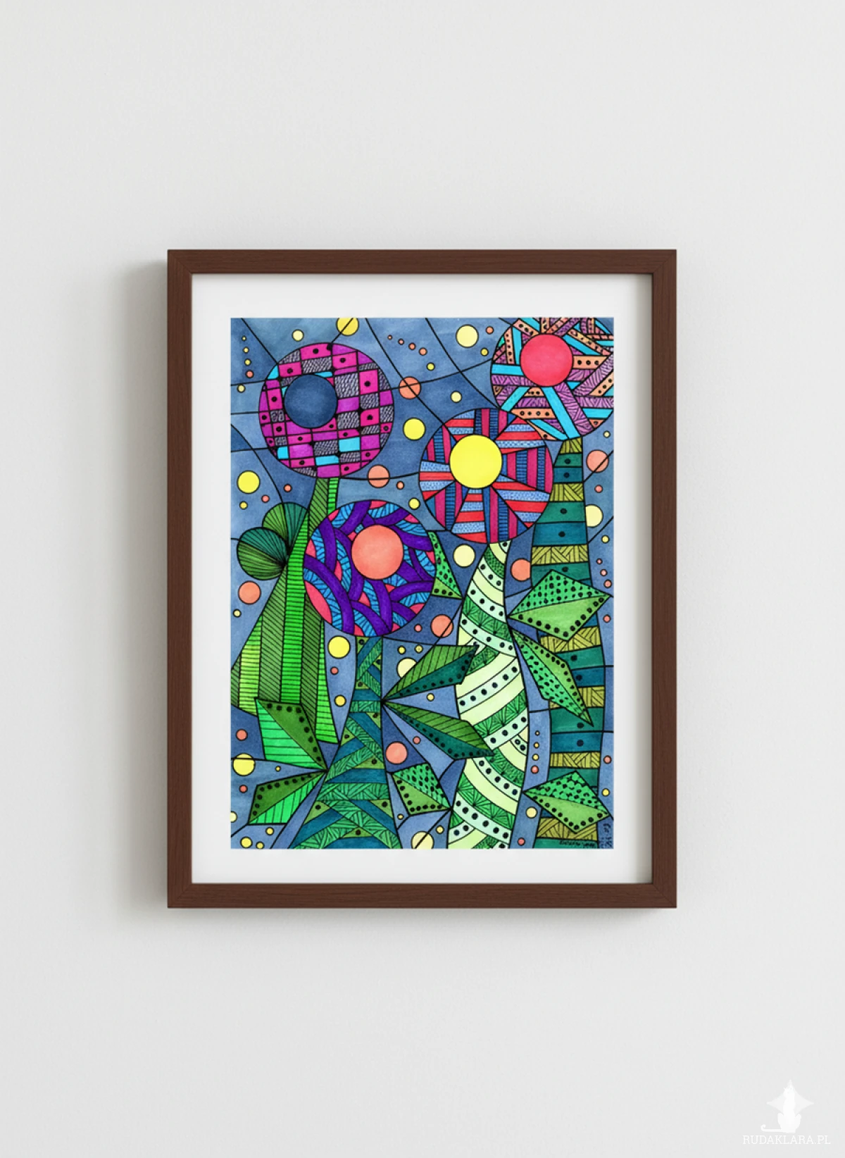 Wydruk autorskiego rysunku na satynowym papierze o gramaturze 200g/m2 - sprzedawany bez ramki - rysunki w ramkach na zdjęciach to wizualizacje.