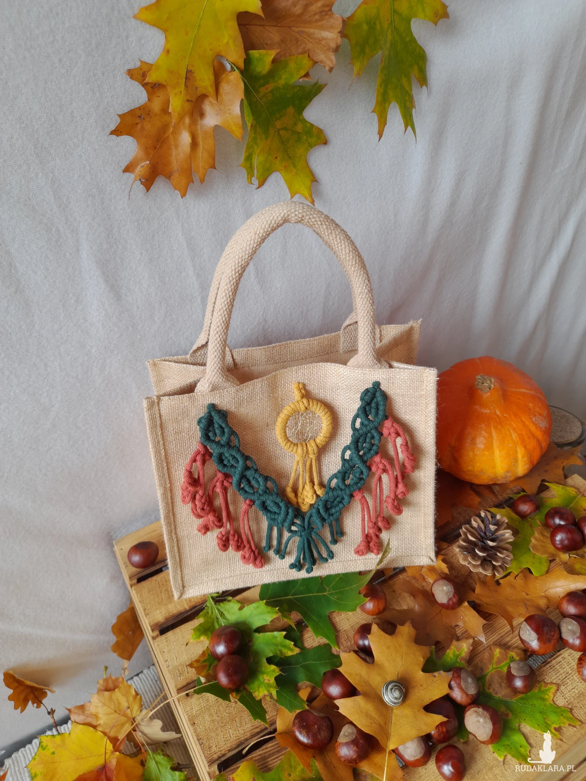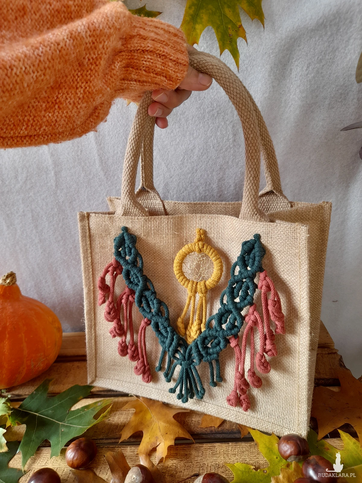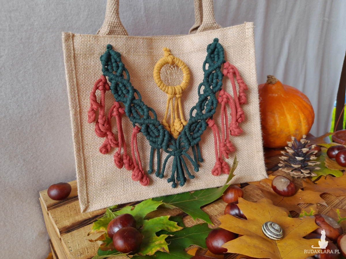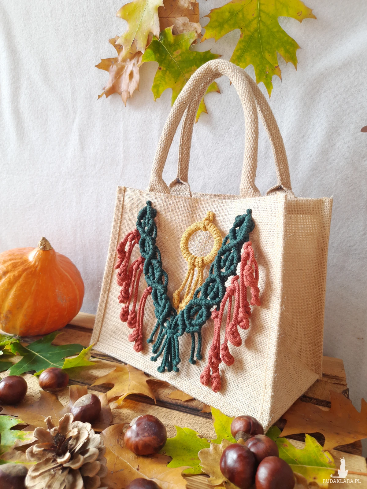 Boho torba inspirowana jesienią – idealna na książki, drobne zakupy lub w duchu eko, jako torba prezentowa
