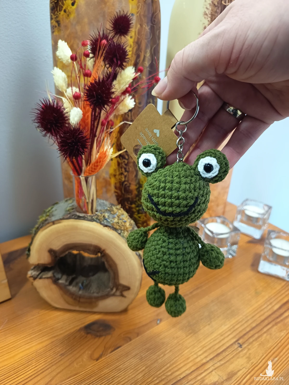 Żabka szydełkowa zawieszka brelok w kolorze wojskowej zieleni