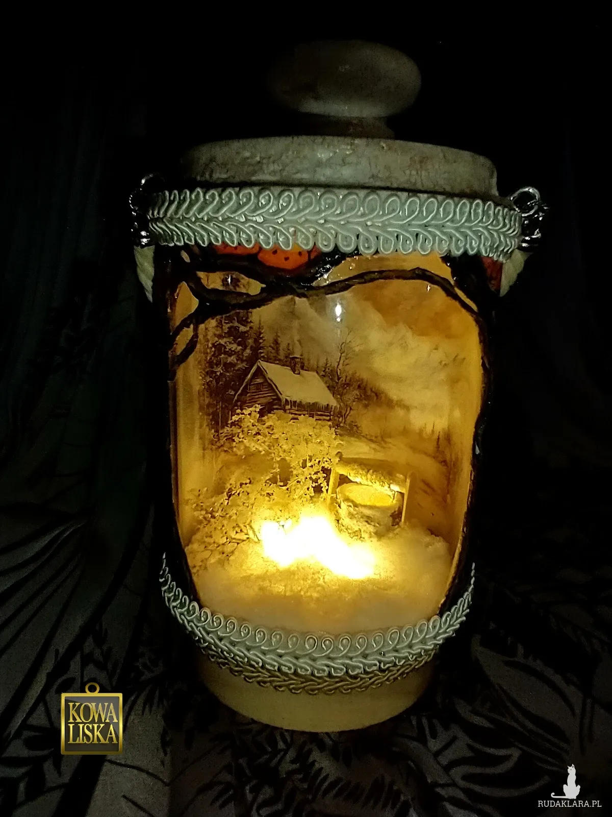 Latarenka wykonana techniką mieszaną.