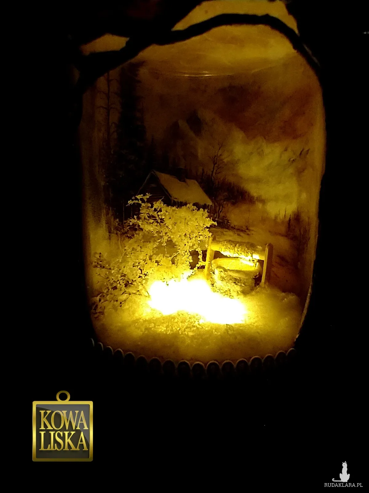 Całość pod szkłem - pięknie ożywa po zapaleniu lampki, znajdującej się w podstawie.