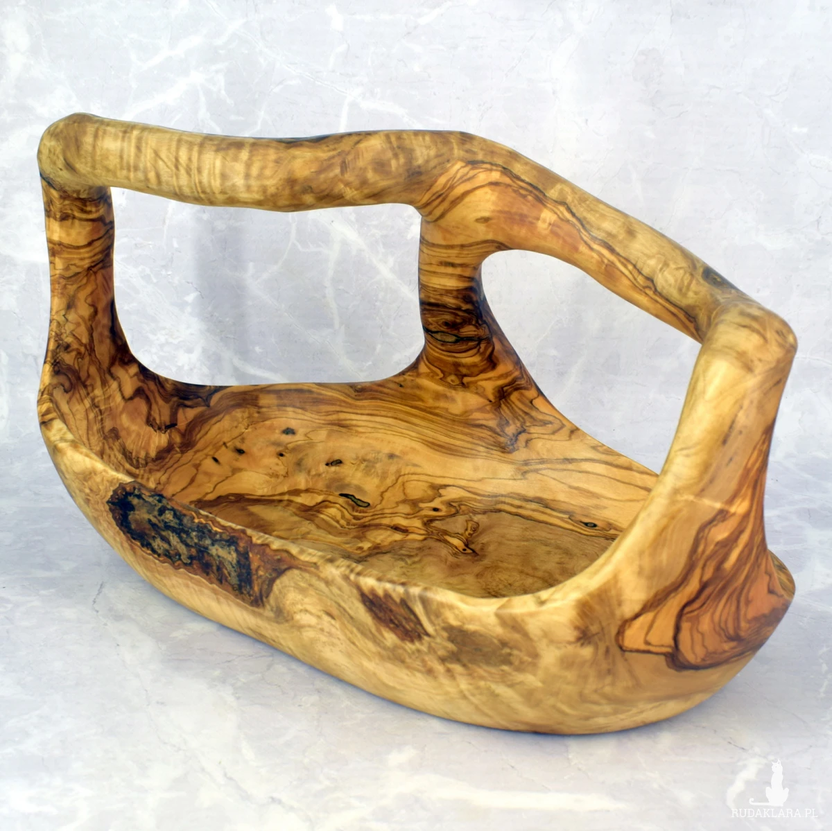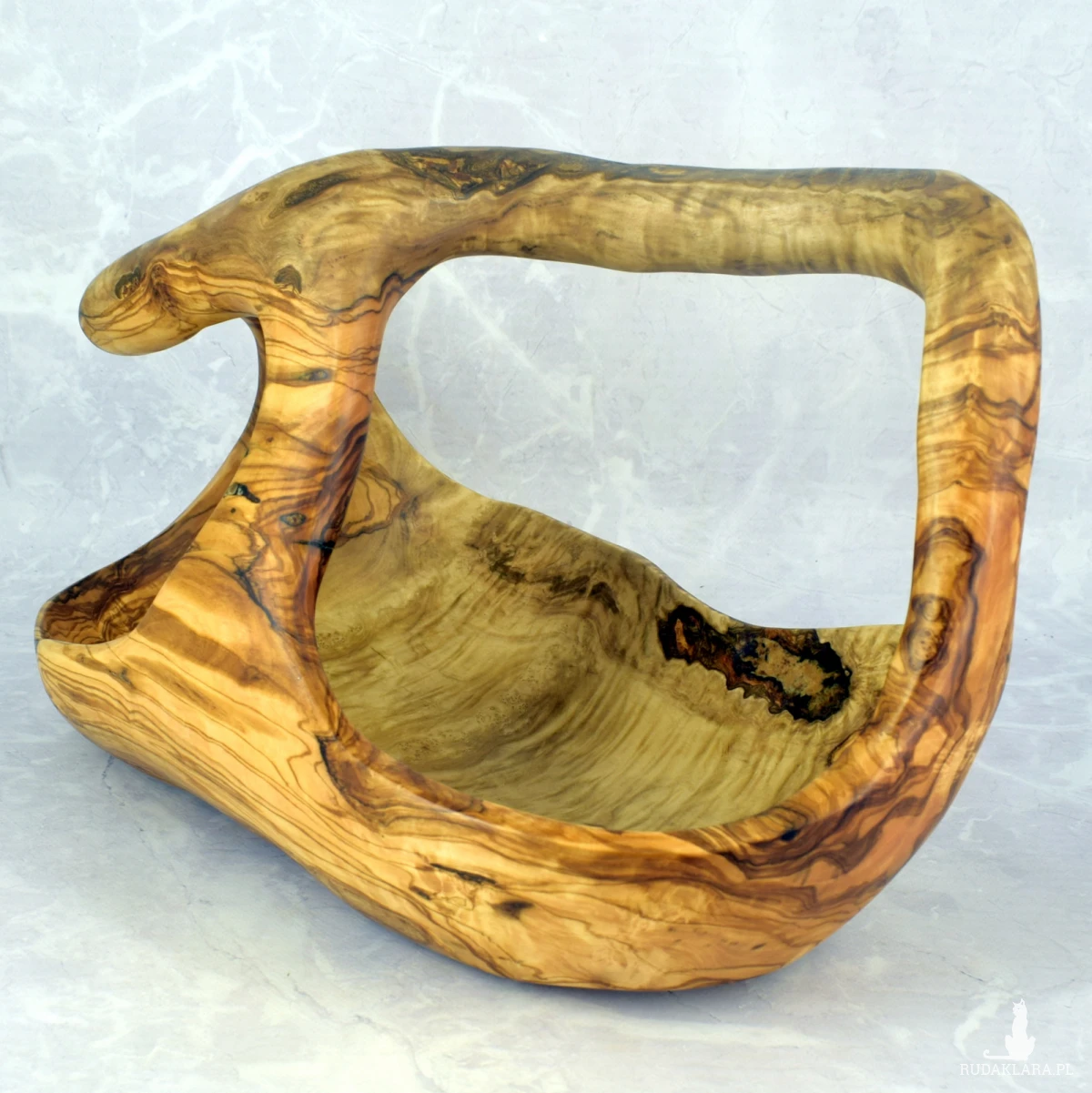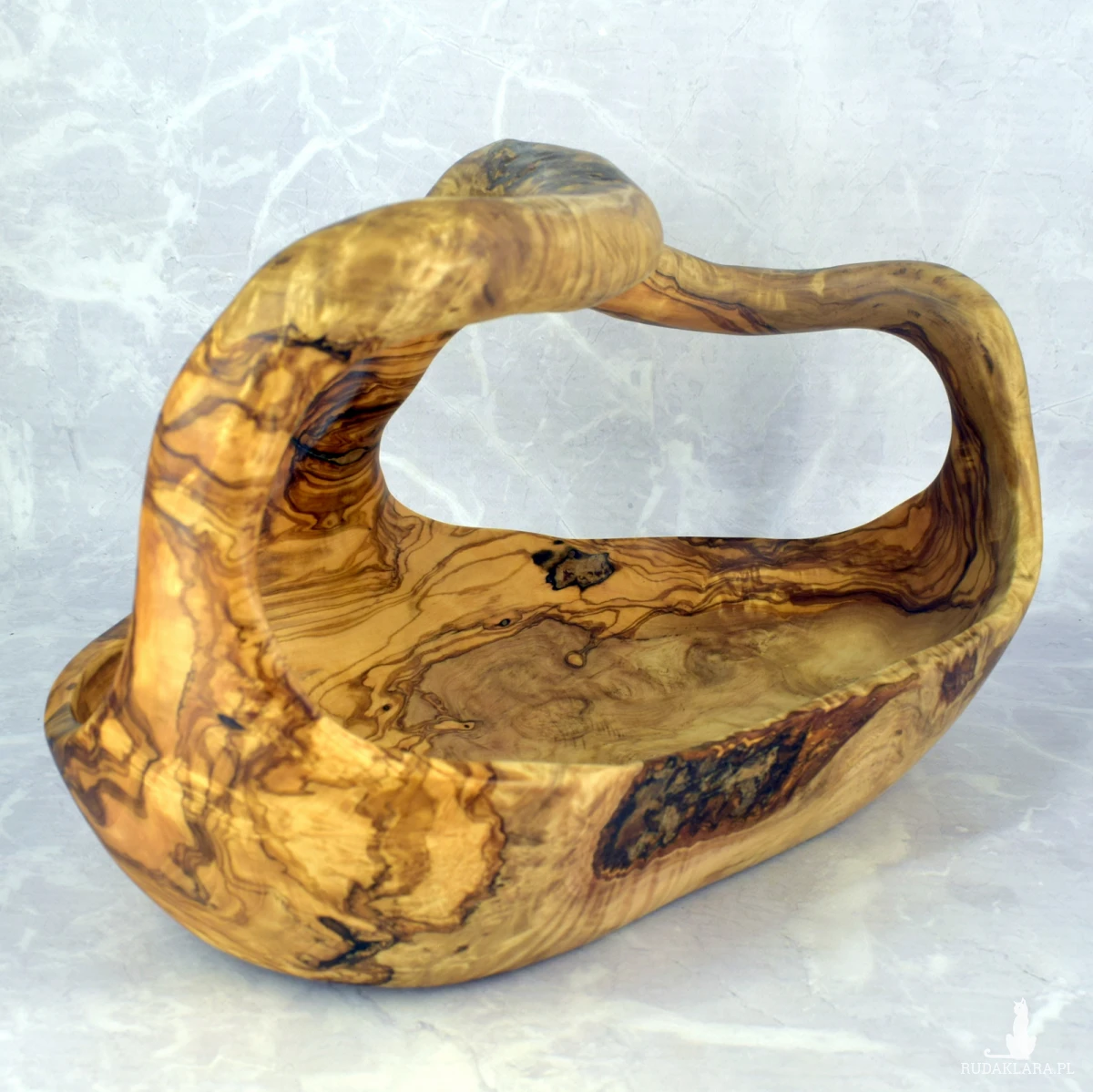 Stylowy duży kosz na owoce z drewna oliwnego, idealny do przechowywania owoców, pieczywa lub drobnych przedmiotów. Świetnie sprawdzi się w kuchni, jadalni czy salonie jako praktyczny element wystroju. Ręcznie wykonany z jednego kawałka drewna. Zabezpieczony naturalnym olejem i woskiem.