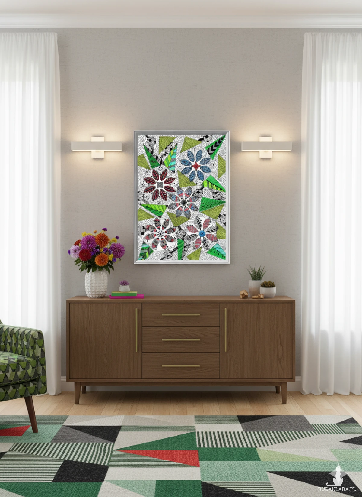 20. KWIATY GEOMETRIA- rysunek, plakat.