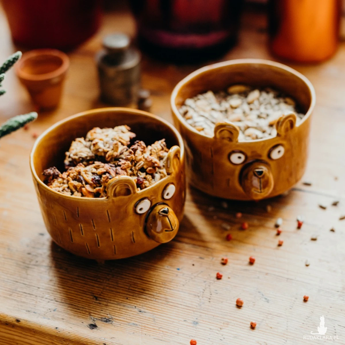 Ręcznie robiona, brązowa miseczka śniadaniowa w kształcie niedźwiadka. Miseczka ceramiczna, wr której możesz przechowywać owoce, słodycze. Może schować w niej swoje drobiazgi, czy wykorzystać ją jako ozdobę.