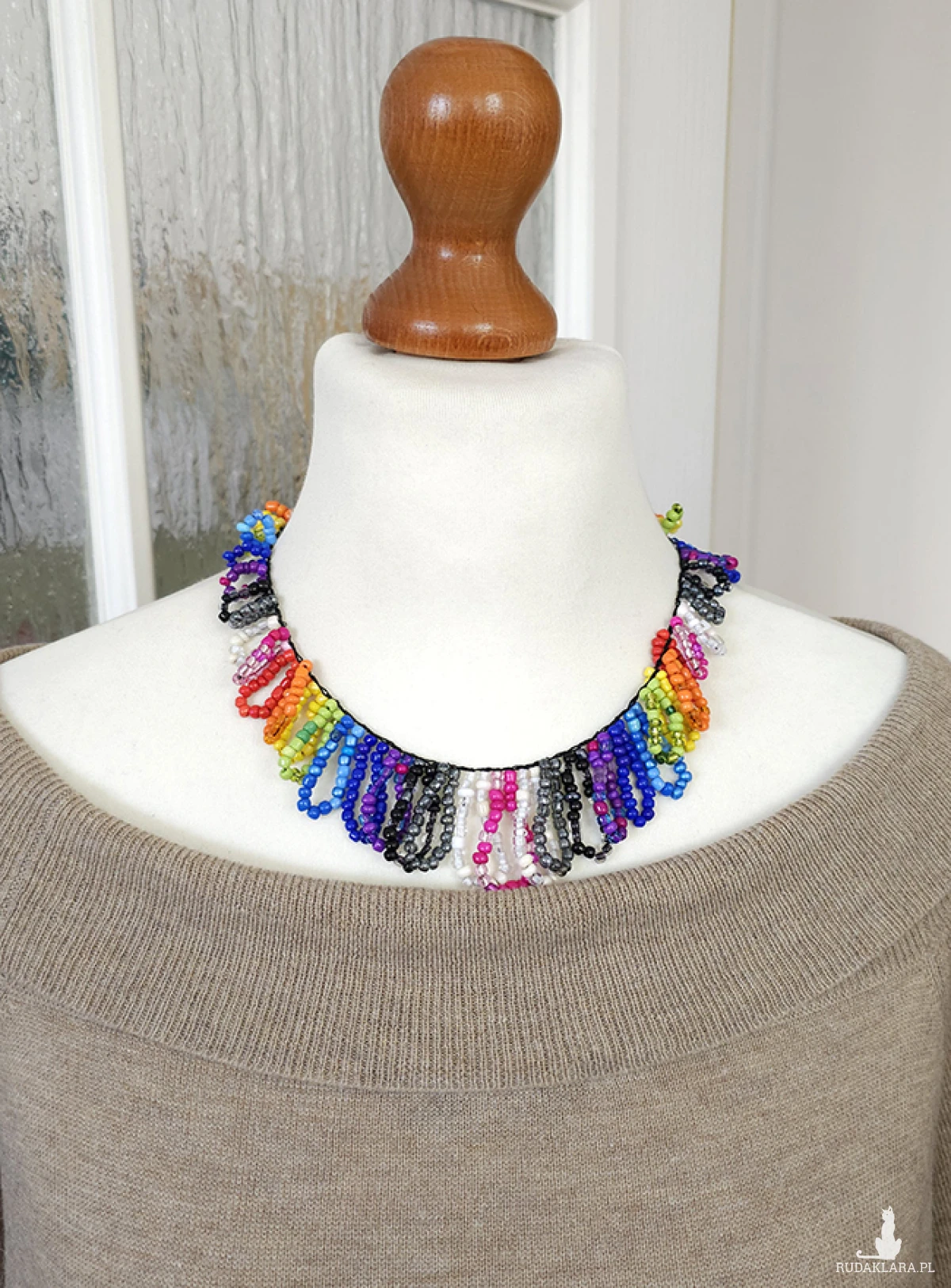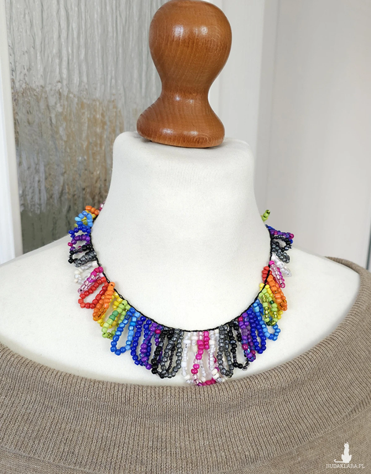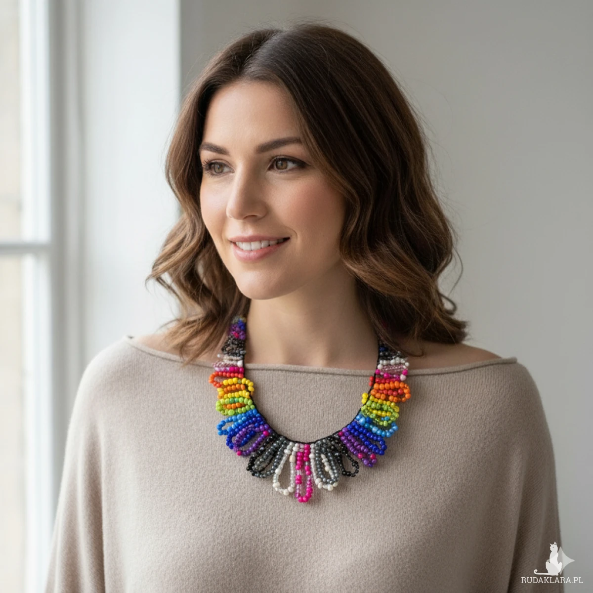 Naszyjnik Choker 'Tęcza z Pętelek' to ręcznie wykonany, uroczy dodatek, który wprowadzi do Twojej stylizacji energię i kolor.