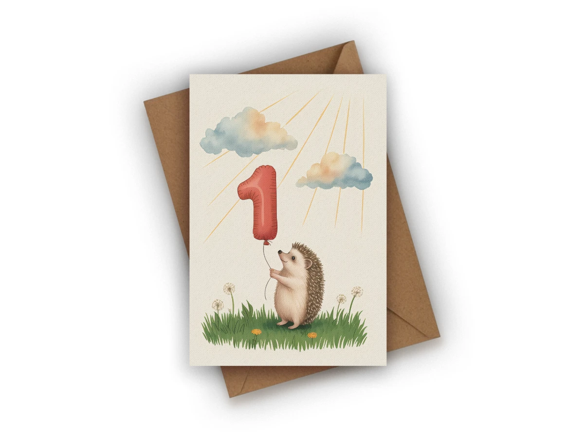 Kartka urodzinowa na Roczek Dziecka z Jeżem