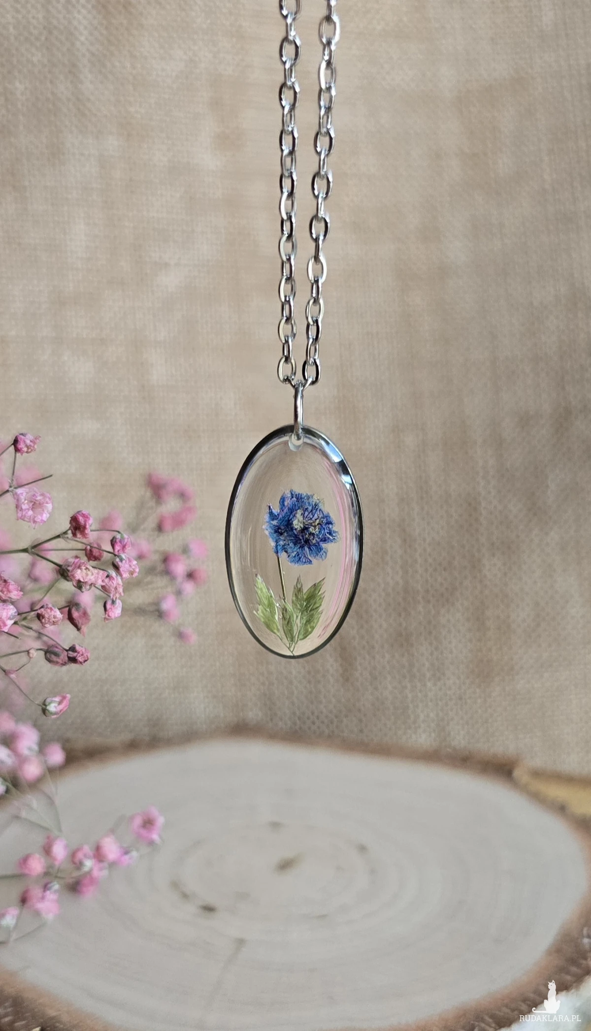 Oferuję Państwu unikalną biżuterię. Zawieszka jest wykonana z suszonych kwiatów i żywicy epoksydowej. Biżuteria jest wspaniałym i oryginalnym prezentem na lata.