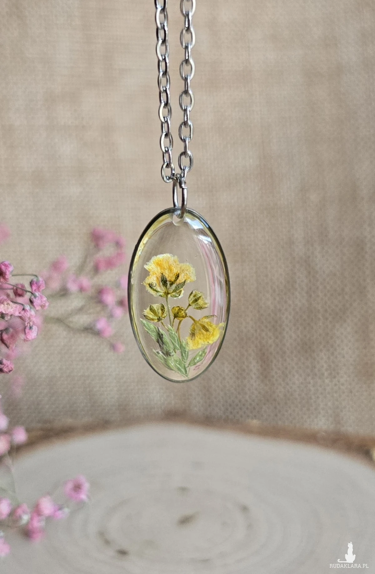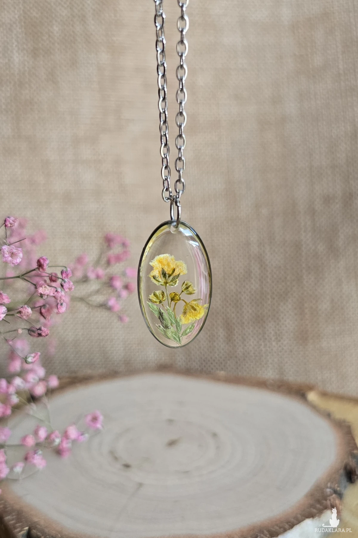 Srebrna zawieszka srebrny wisiorek naszyjnik żywica z żywicy kwiaty z kwiatami jajowata retro naturalna dziewczęca kobieca bukiet kwiatowy żółty