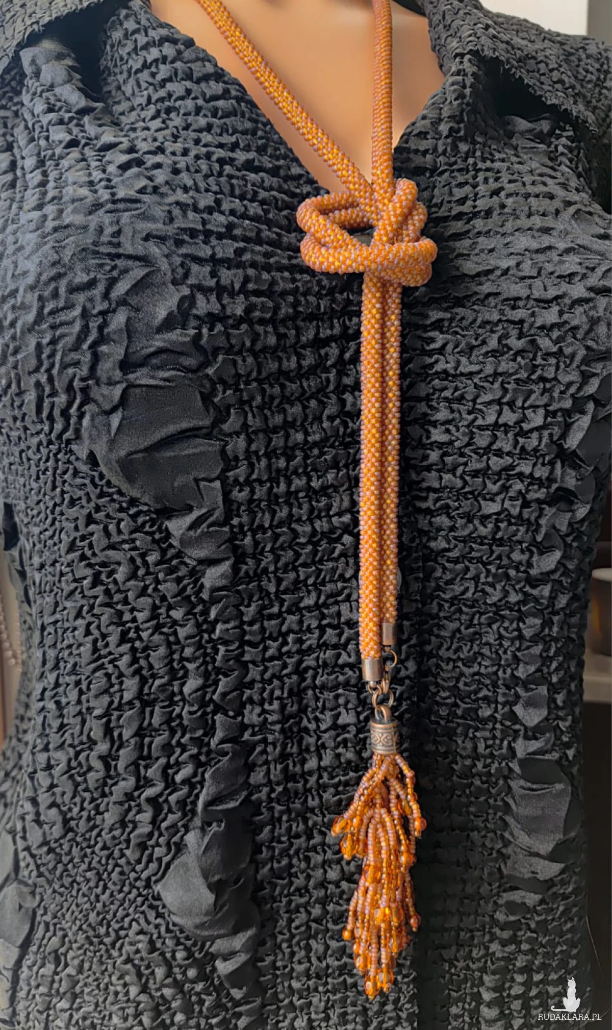 Naszyjnik bardzo długi 128 cm sznura koralikowego i zawieszka