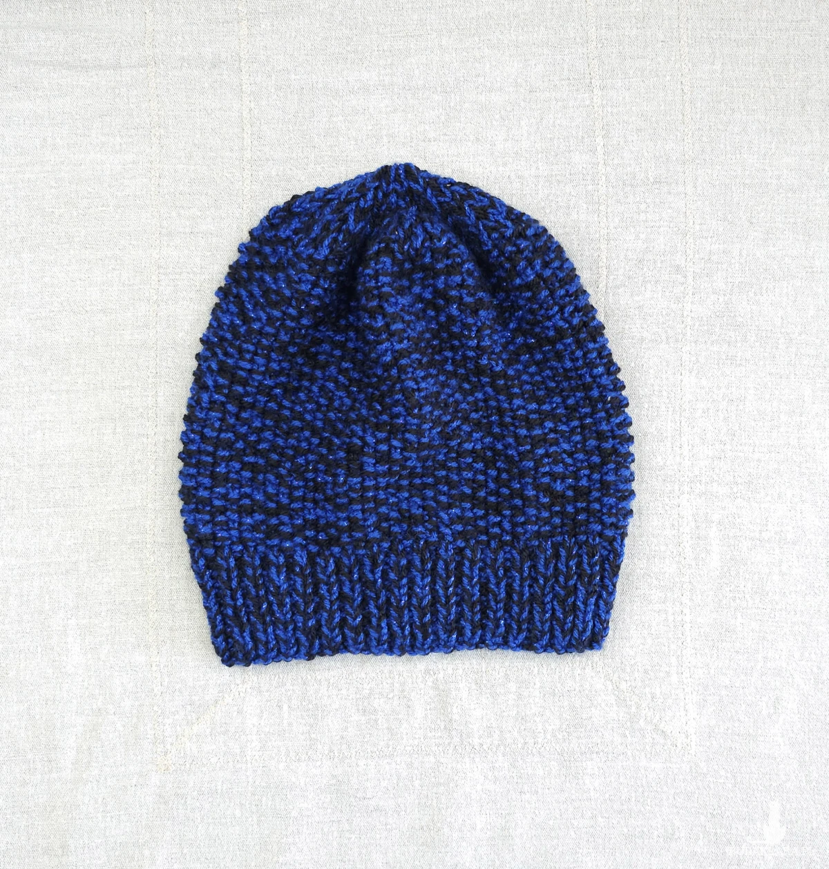 Czapka wykonana ręcznie na drutach z akrylowej włóczki.