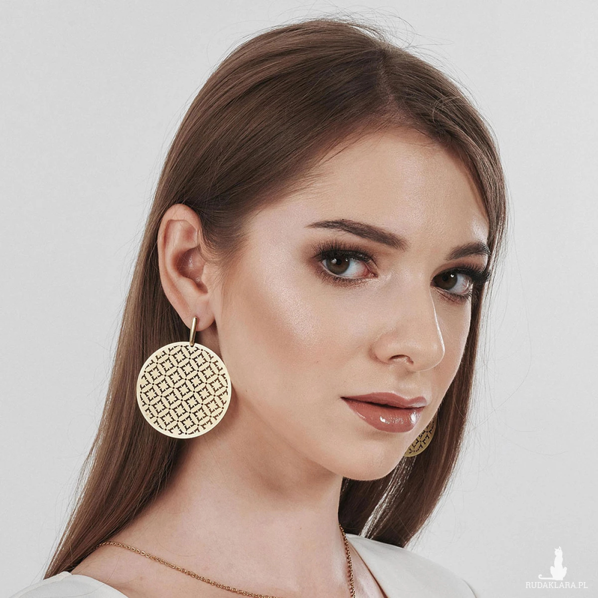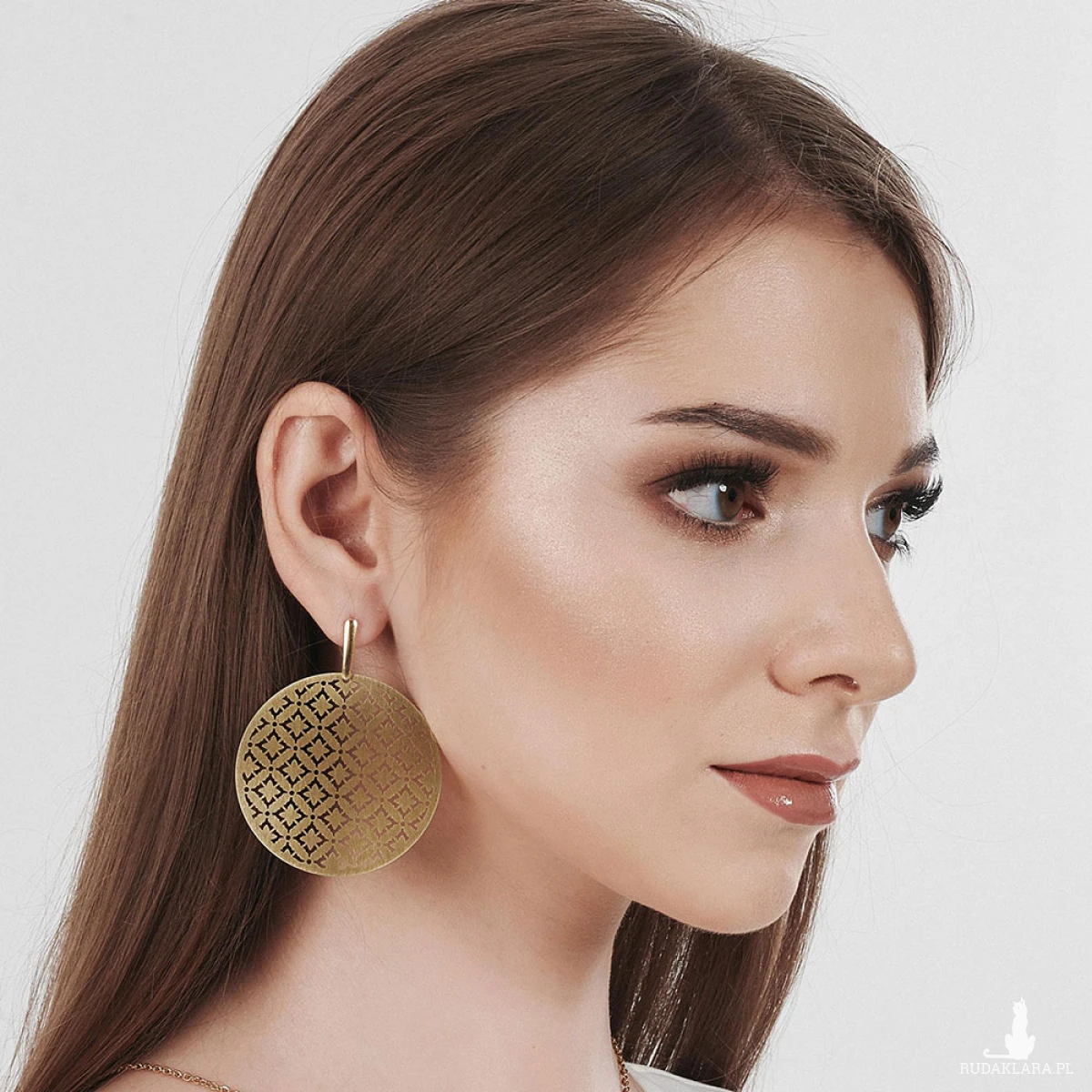 Kolczyki Urania z ażurowym wzorem inspirowanym orientalnym wzornictwem, w ponadczasowym odcieniu jasnego złota. Mimo dużego rozmiaru, ich budowa sprawia, że są niezwykle lekkie, co za tym idzie - nie obciążają ucha. Wykonane są z wysokiej jakości mosiądzu, nie zawierającego kadmu, niklu ani ołowiu.