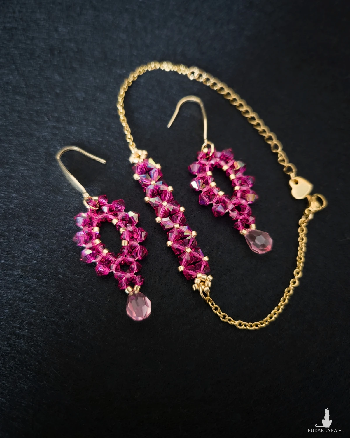 Komplet Biżuterii „Fuchsia & Rose” - Bransoletka i Kolczyki z Kryształków i Koralików