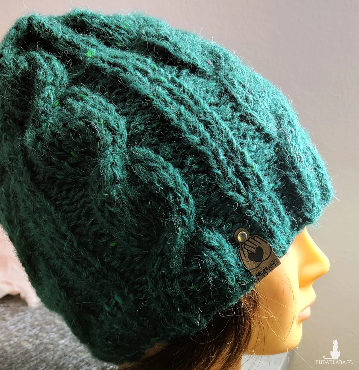 Czapka zimowa ręcznie zrobiona w kolorze zieleni szmaragdowej.