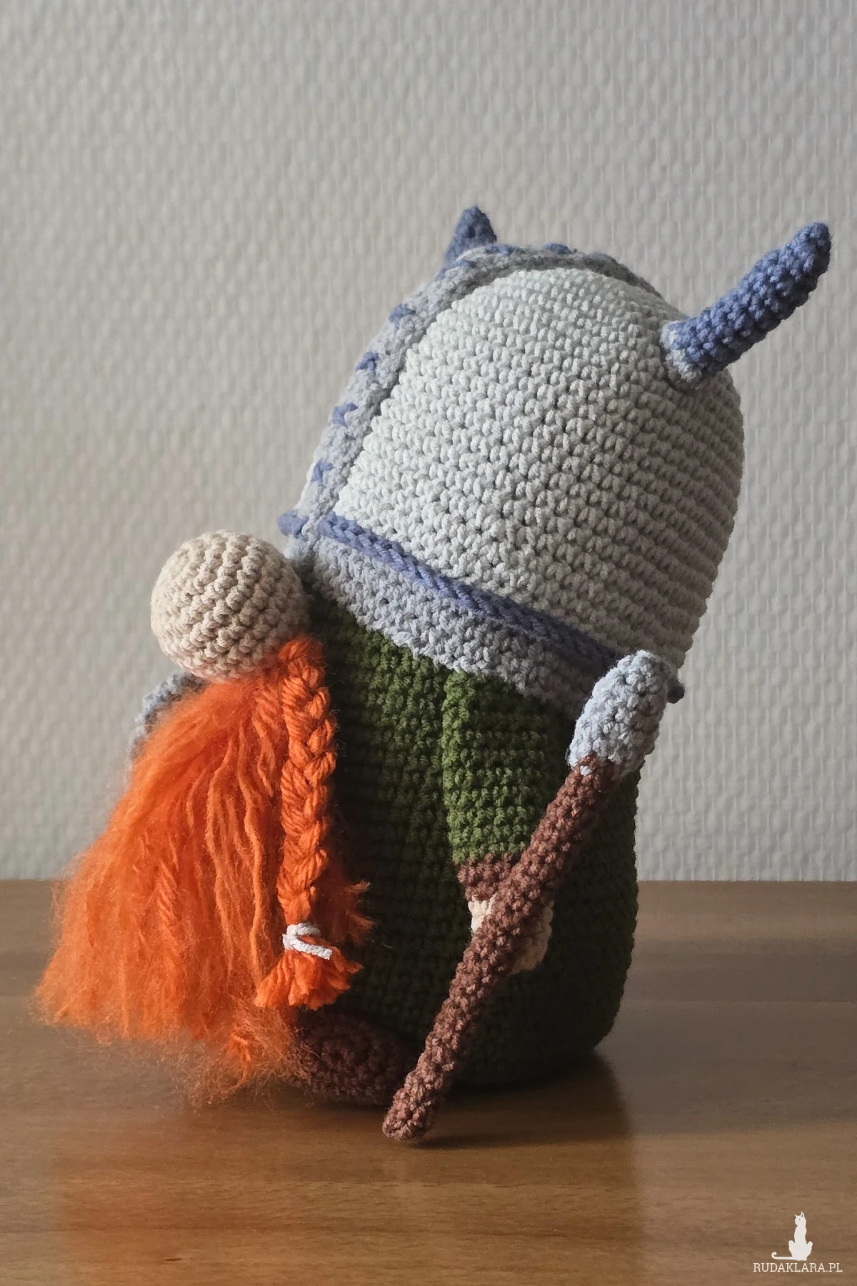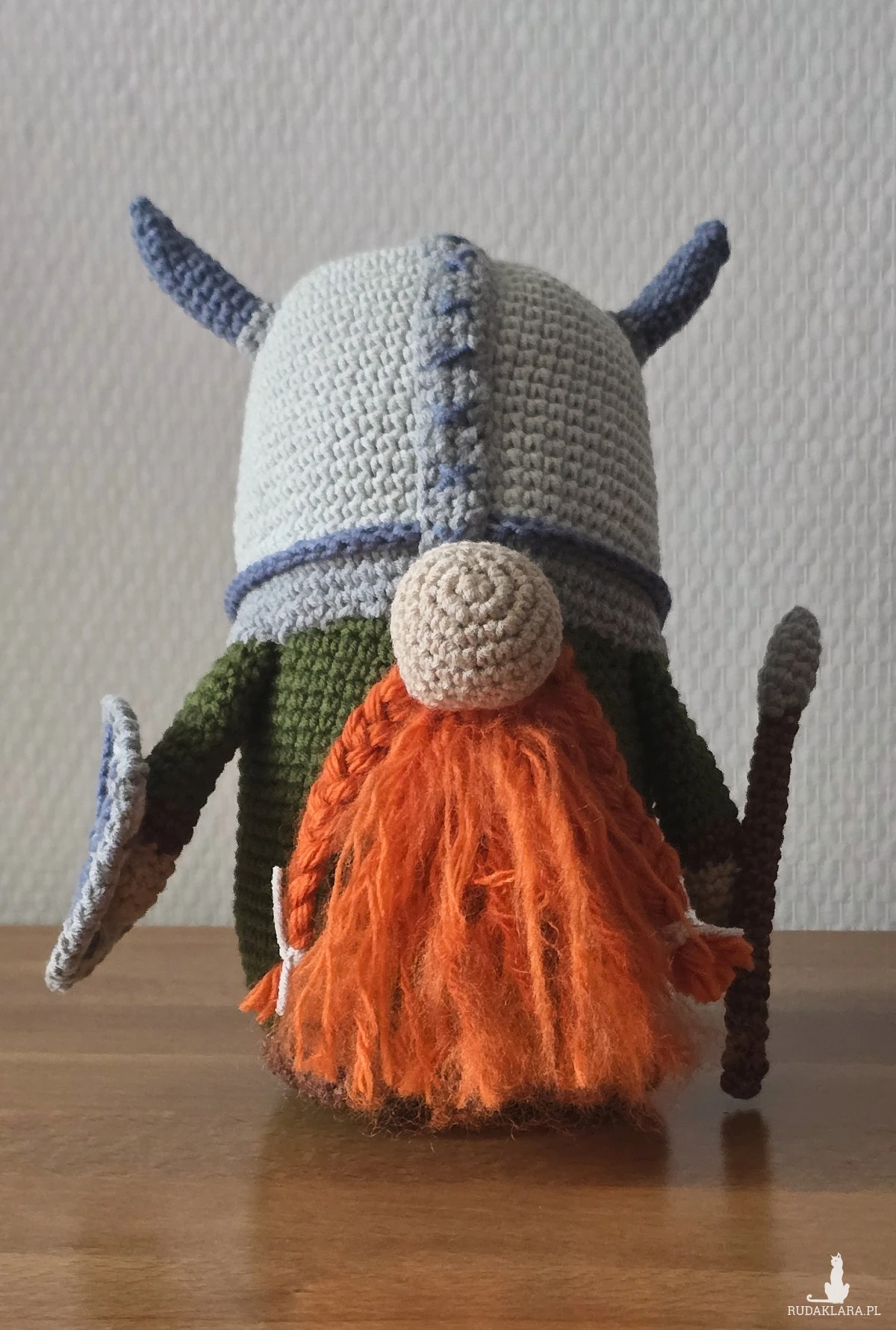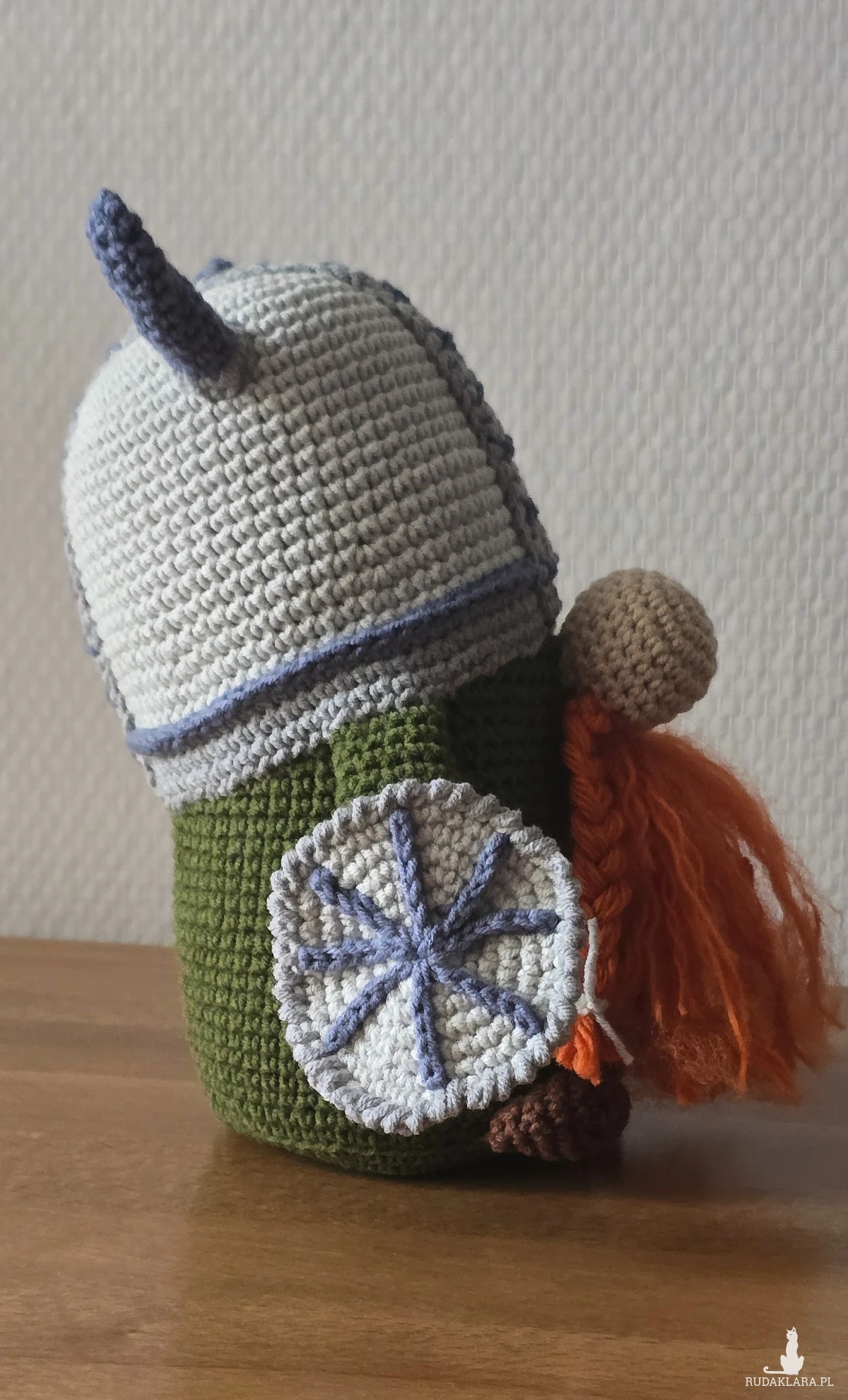 Gnom został stworzony przy pomocy szydełka z włóczki YarnArt Jeans (55% bawełna, 45% poliakryl), a broda z włóczki Nako Sport. Gnom stoi samodzielnie, wszystkie elementy (włączając oręż i hełm) są przyszyte na stałe