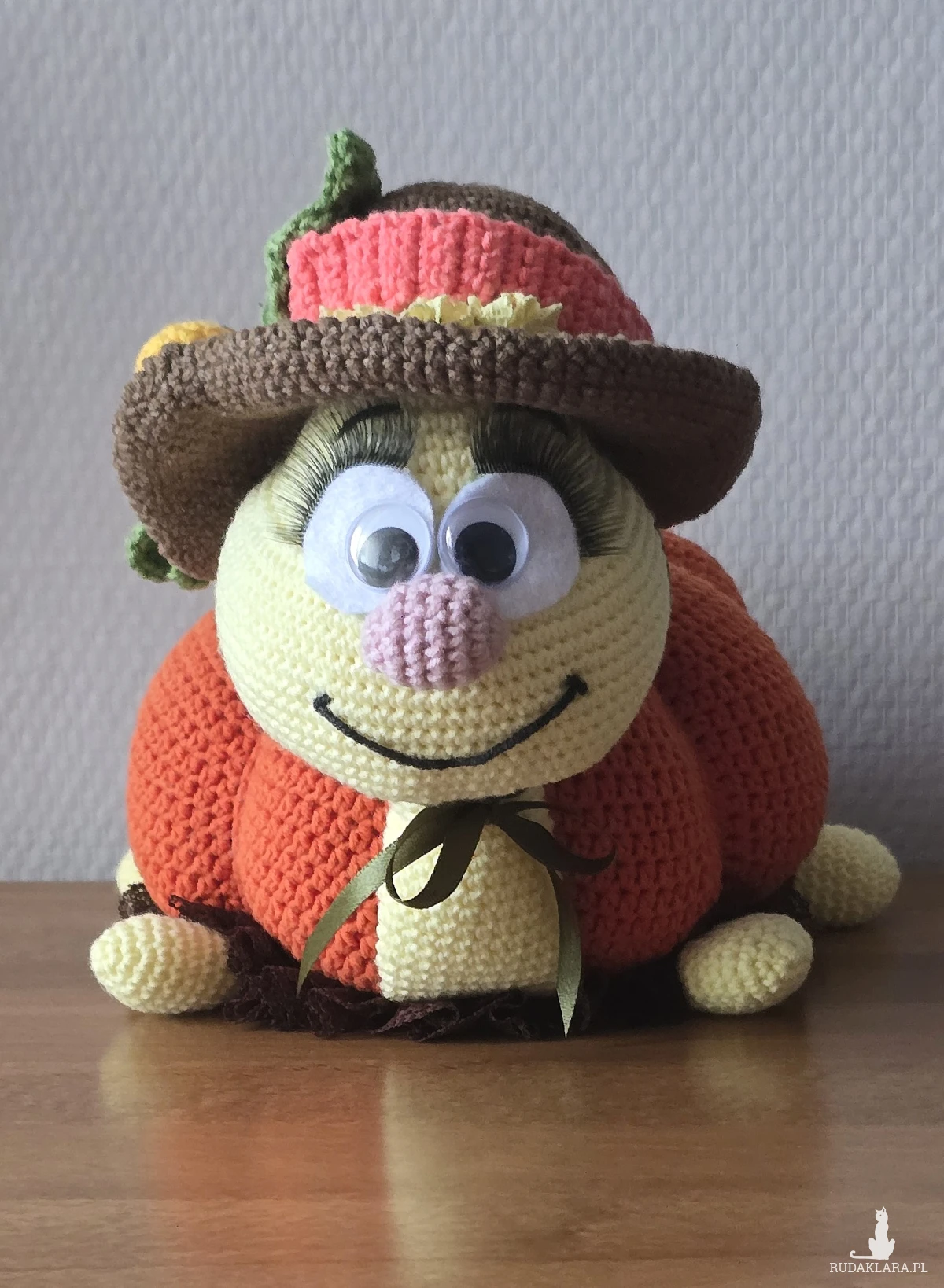 COŚ została stworzona przy pomocy szydełka z włóczki YarnArt Jeans (55% bawełna, 45% poliakryl). Dodatkowo: koronki zostały przyszyte, sztuczne rzęsy i oczy przyklejone, kapelusz jest przyszyty. Materiał wypełniający to kulka silikonowa.