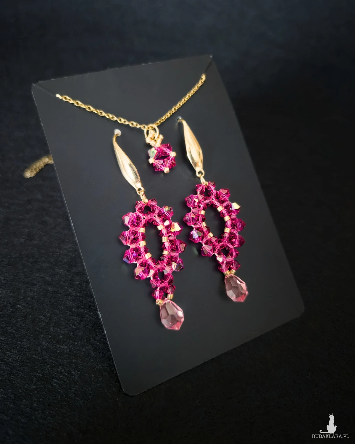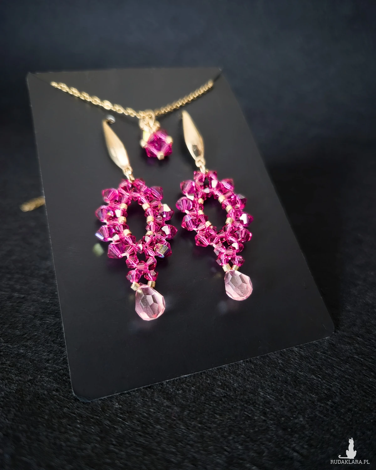 Komplet Biżuterii „Fuchsia & Rose” - Naszyjnik i Kolczyki z Kryształków i Koralików
