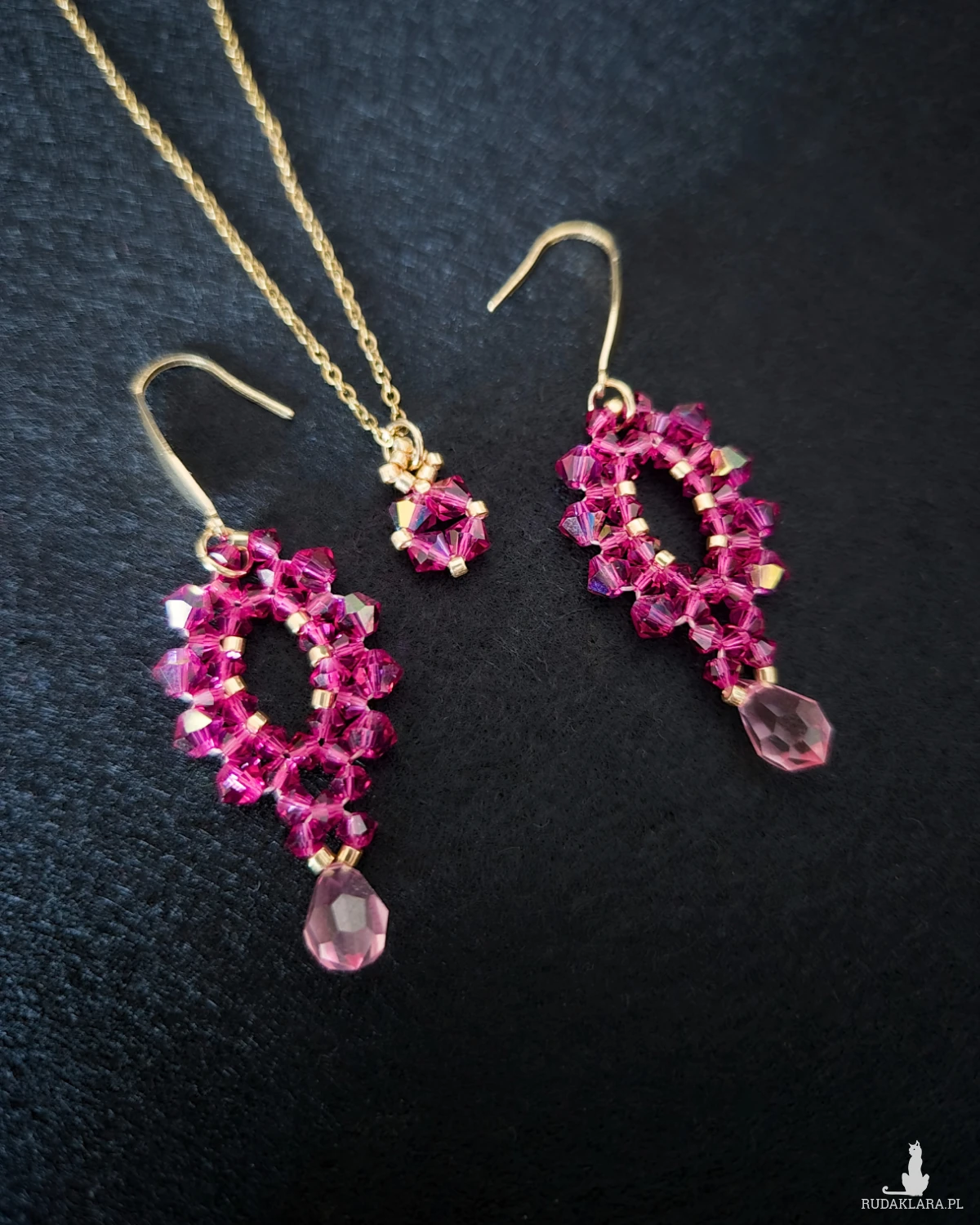 Kolczyki i naszyjnik wykonano ręcznie z kryształków Preciosa Bicone: