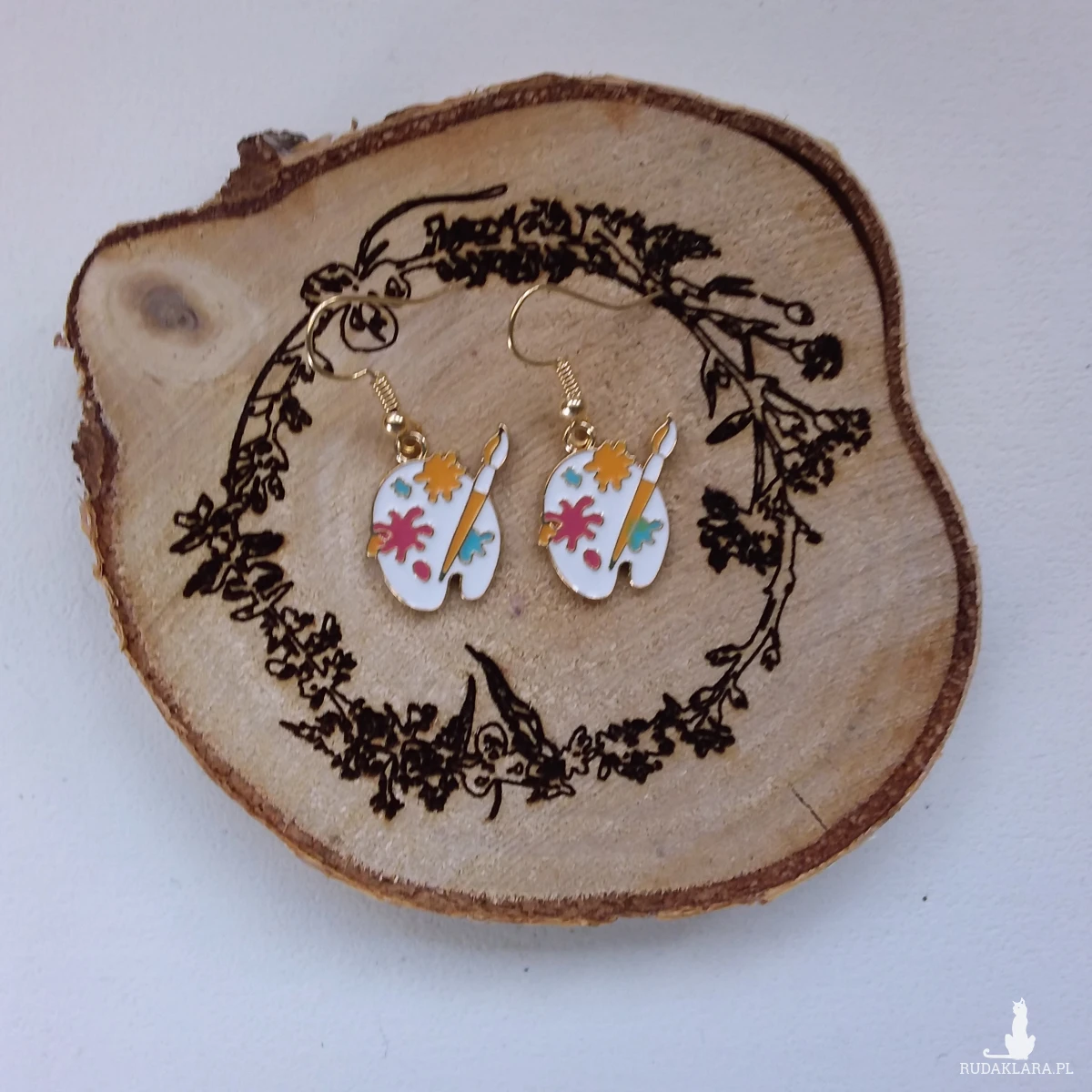 Kolczyki z motywem palety z farbami, stal chirurgiczna. Dł. z biglem ok. 3,5 cm
