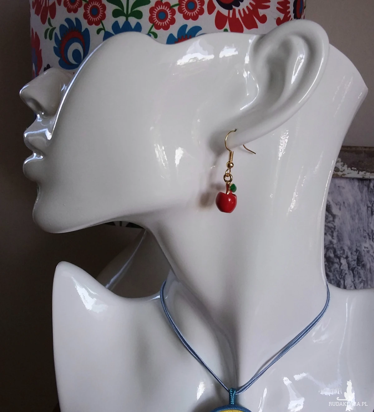 Kolczyki z motywem jabłek, bigle ze stali chirurgicznej. Dł. z biglem ok. 3,5cm