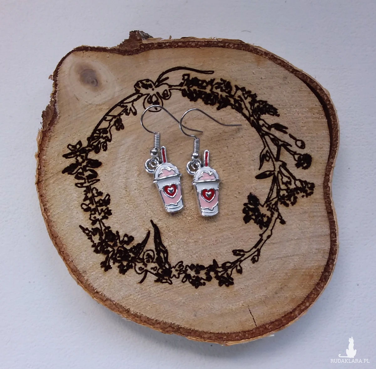 Kolczyki z motywem napojów, stal chirurgiczna. Dł. z biglem ok. 3 cm