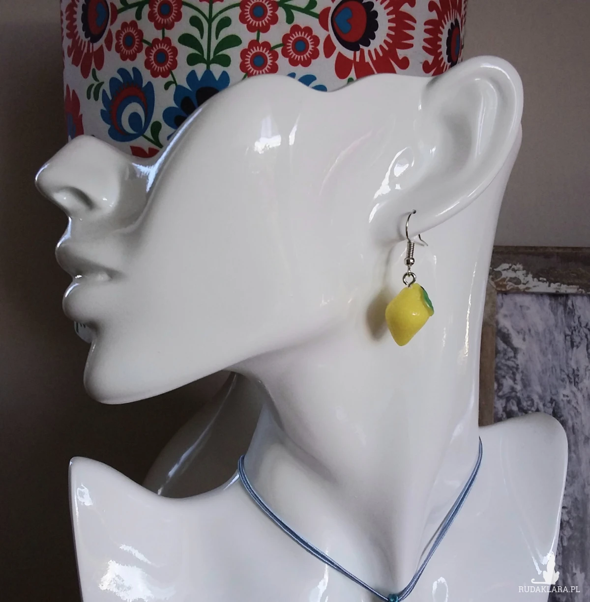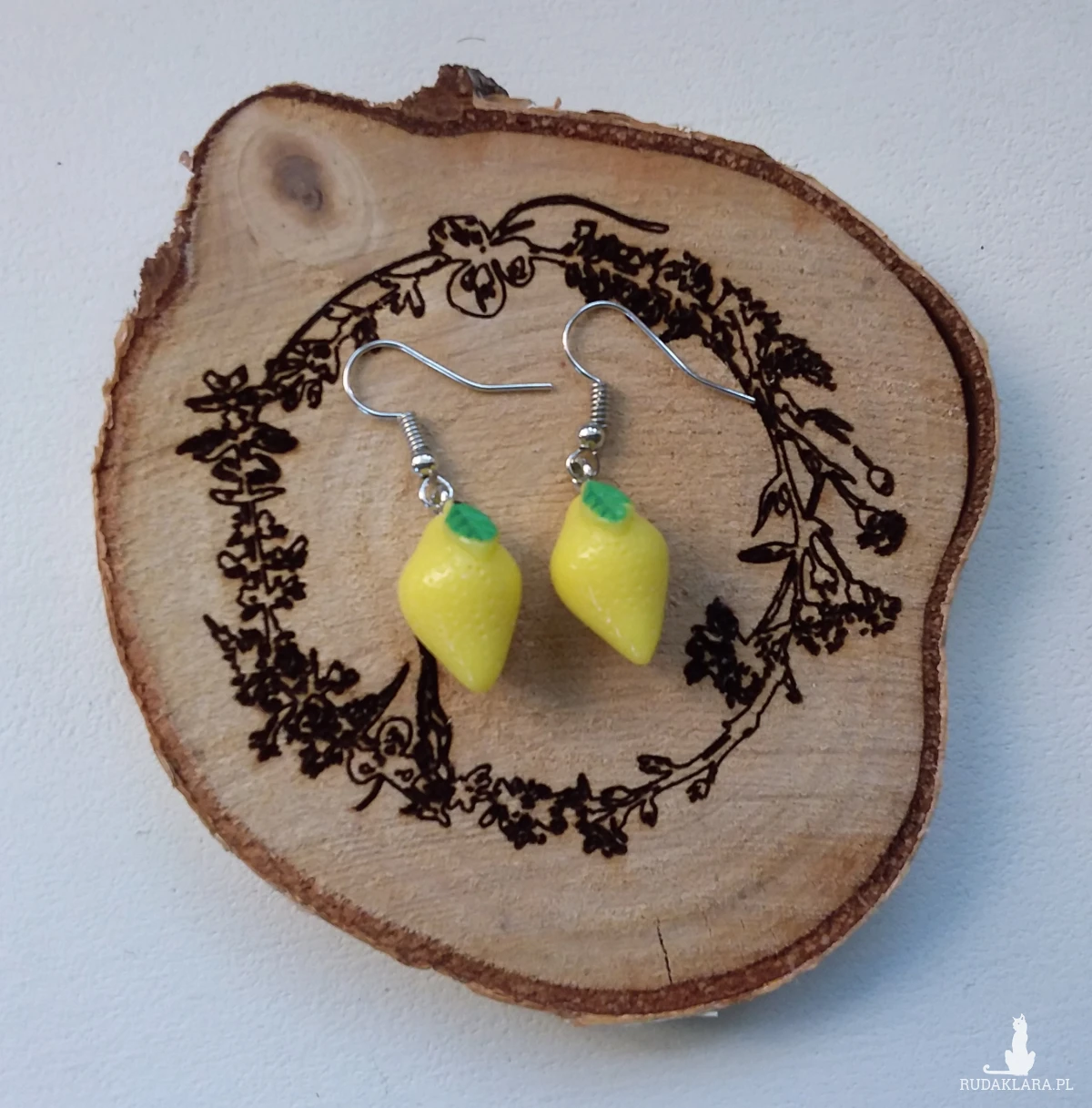Kolczyki z motywem cytryn, bigle ze stali chirurgicznej. Dł. z biglem ok. 3,5cm