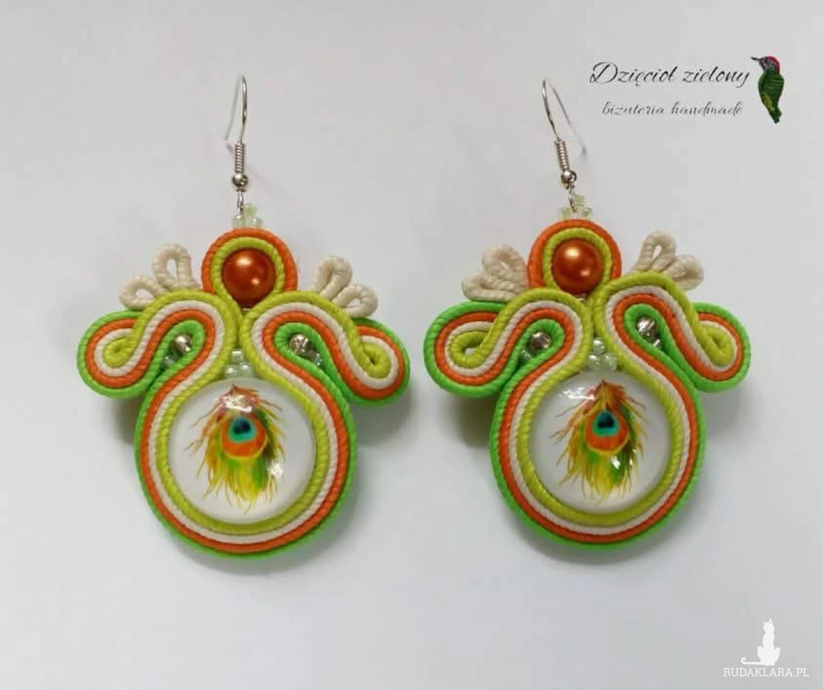 Kolczyki wykonane w technice sutasz, ręcznie szyte. Wymiary 4,5 z 6,5 cm