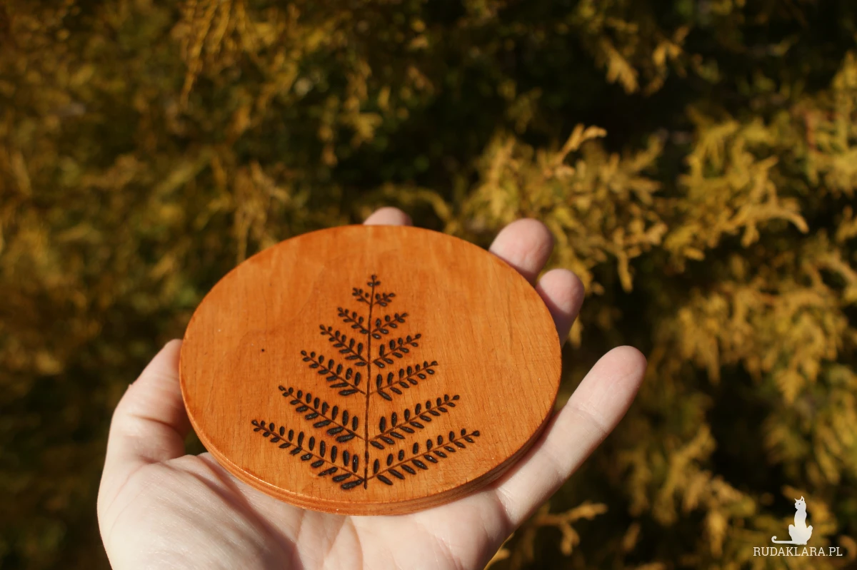 * ręcznie wypalana w technice pirografii