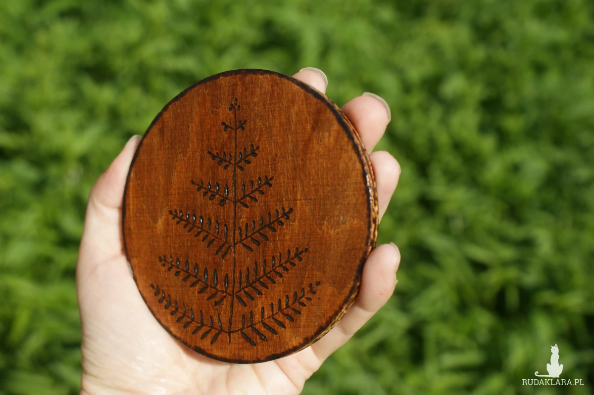 Drewniane, wypalane rękodzieło inspirowane naturą.