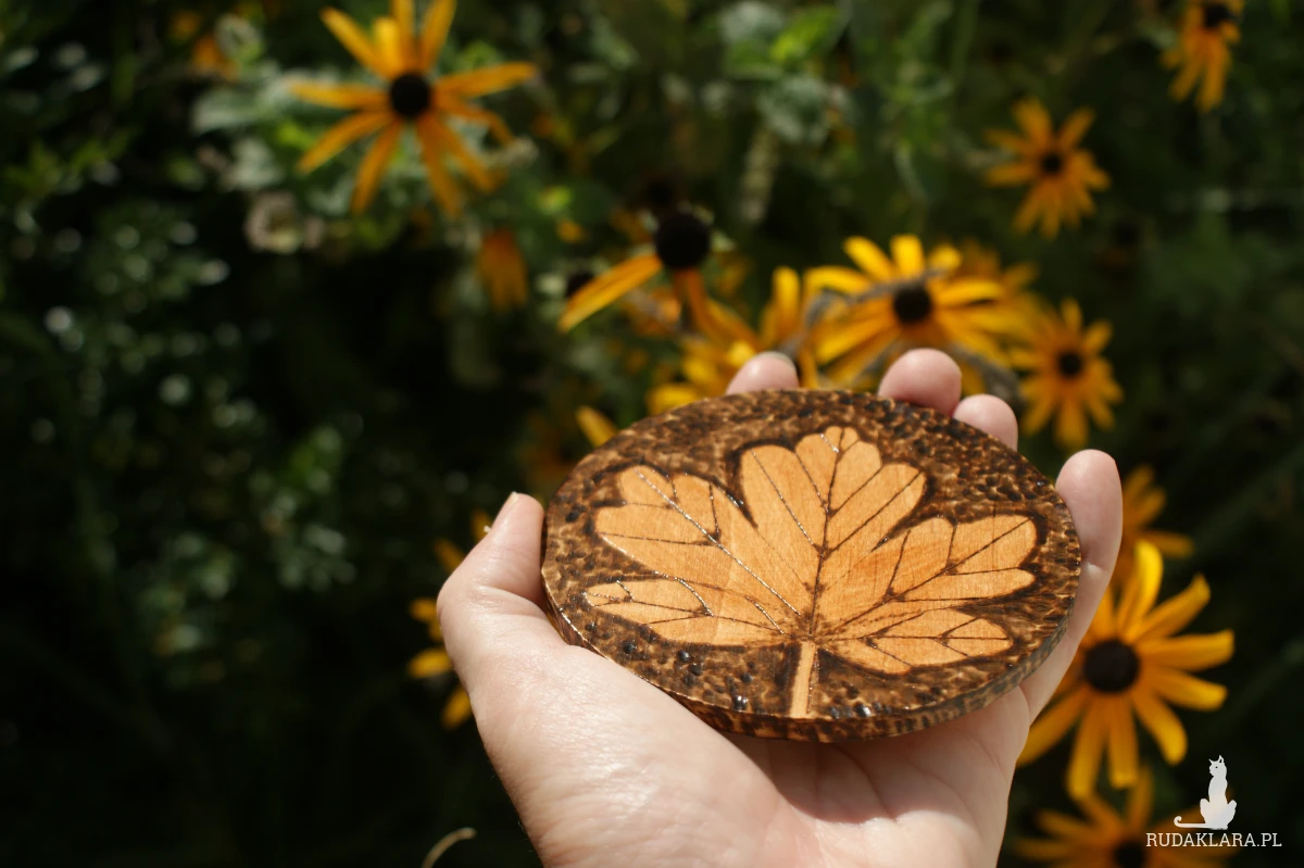 Drewniane, wypalane rękodzieło inspirowane naturą.