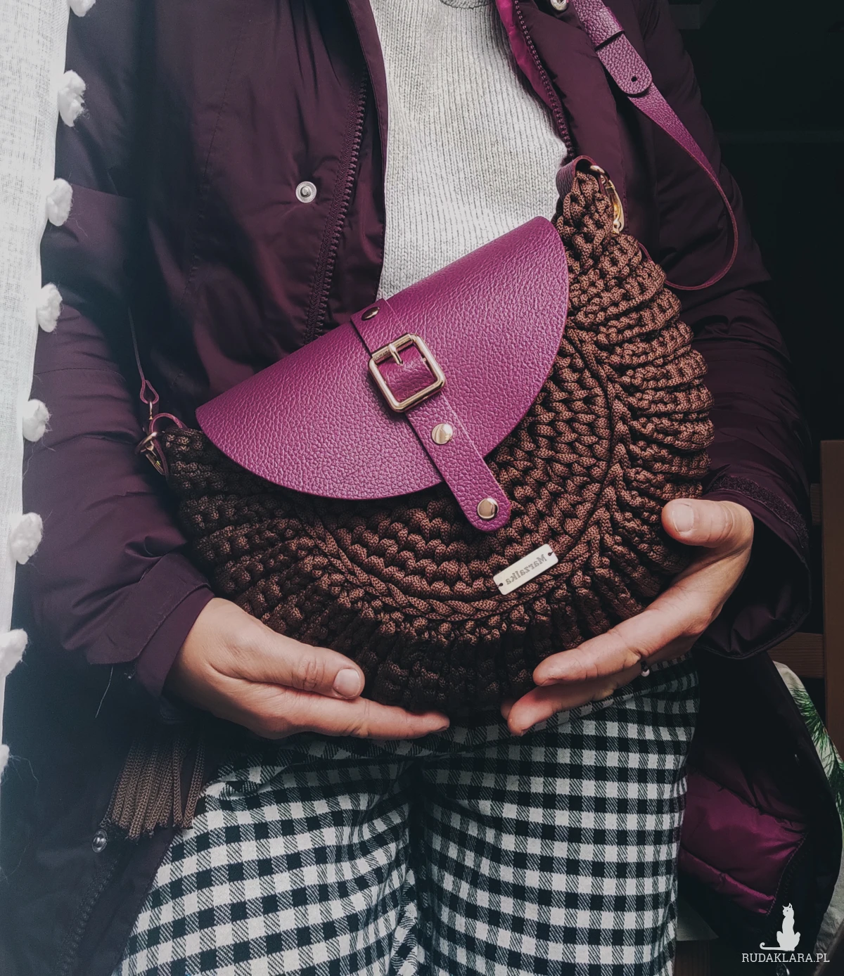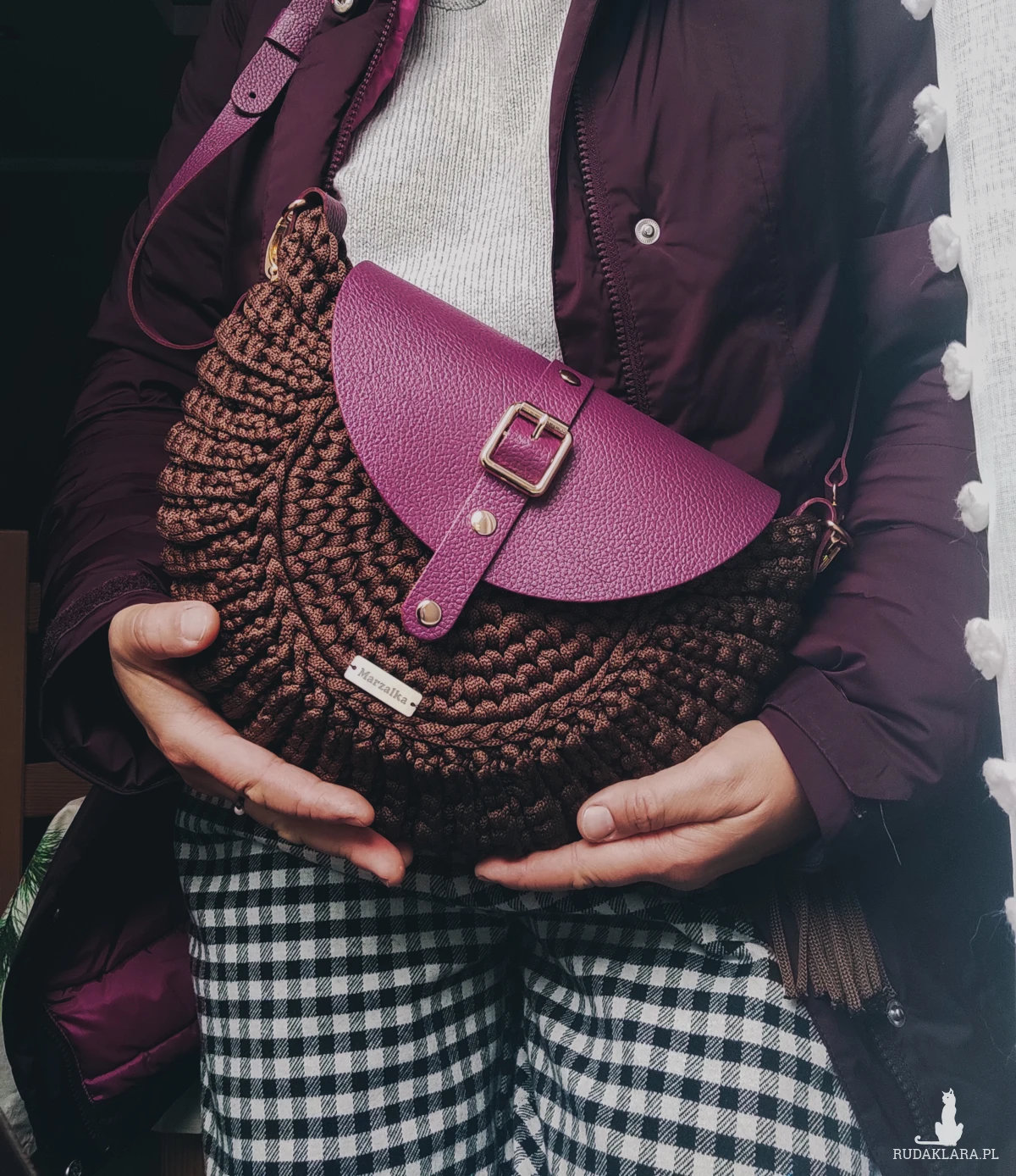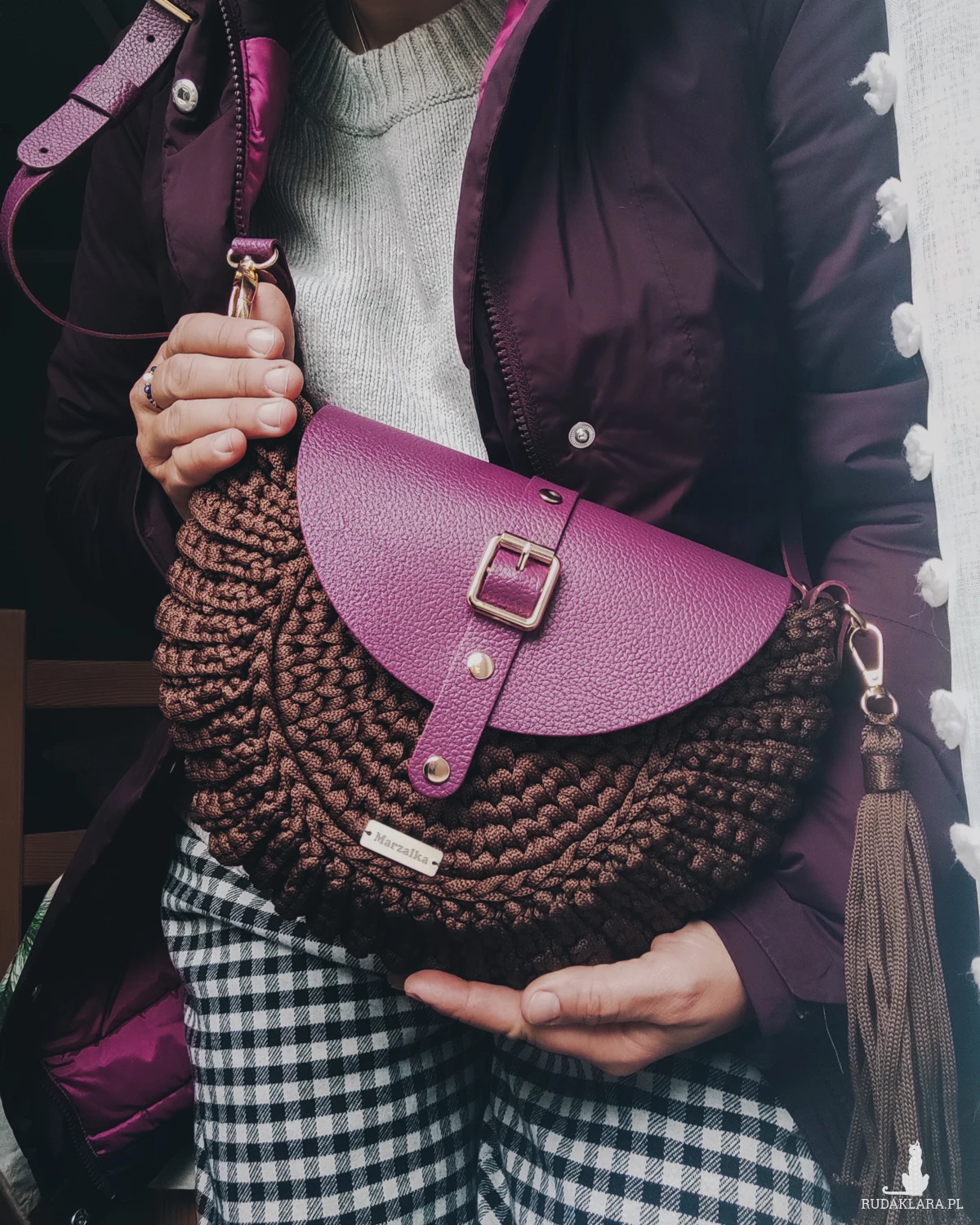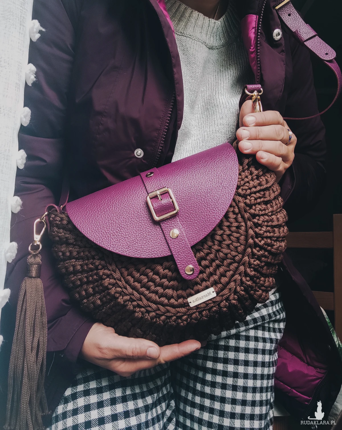 torebka na szydełku oreo maxi dodatki ze skóry naturalnej