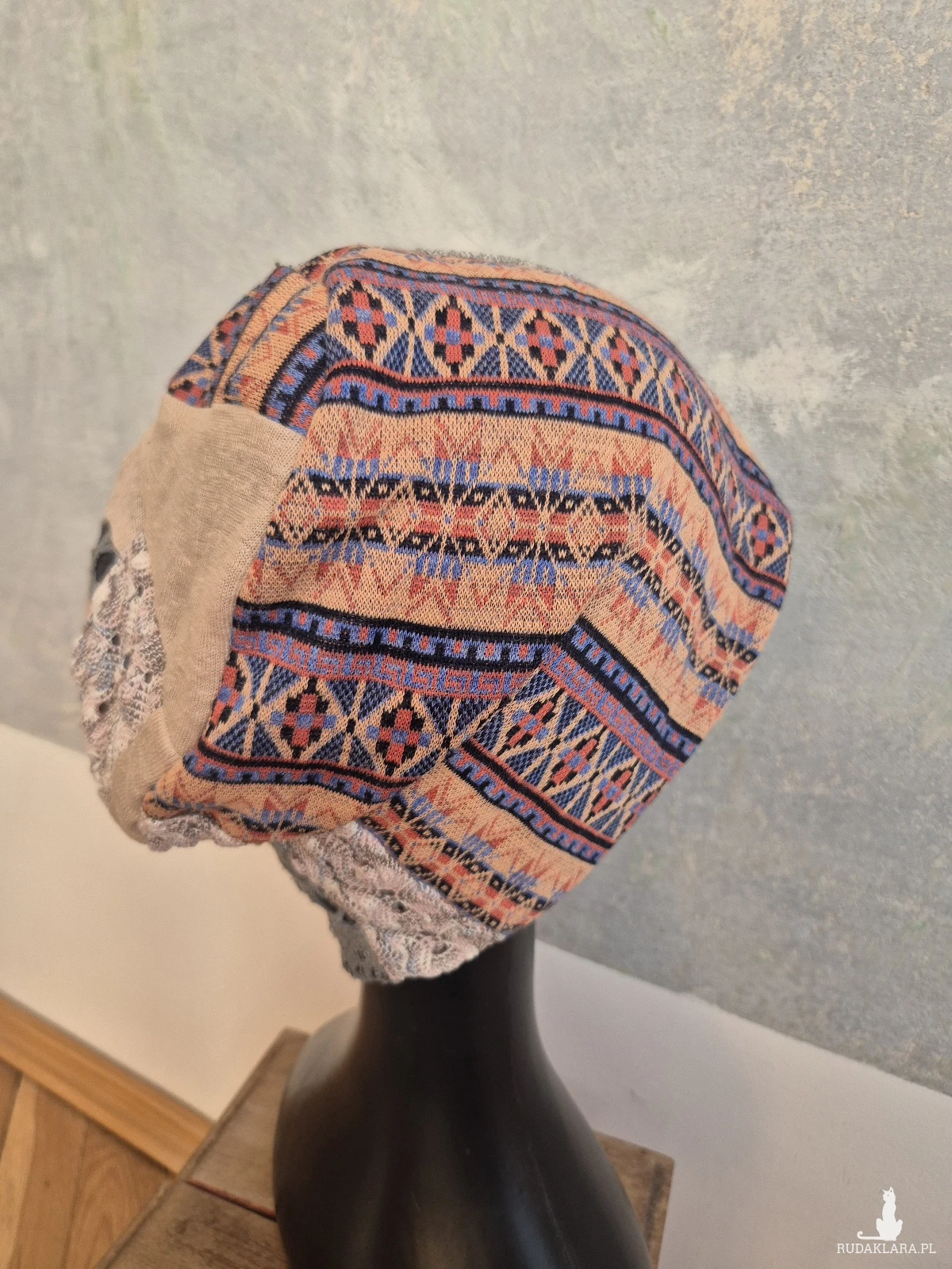 Czapka patchworkowa Boho z elementami koronki na podszewce rozmiar uniwersalny Box A1
