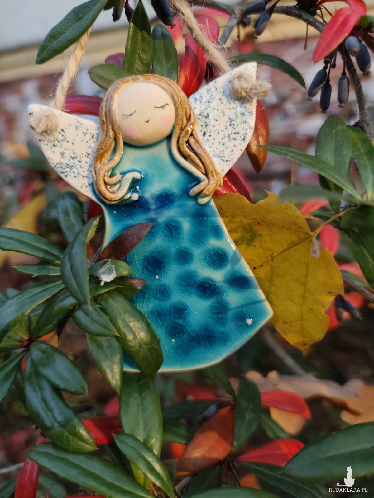 Aniołek ceramiczny - rękodzieło, wykonany z gliny szamotowej, szkliwiony i dwukrotnie wypalany w piecu ceramicznym. Wielkość 8 cm. Polecam na dodatek do prezentu. Będzie się Wami opiekował.