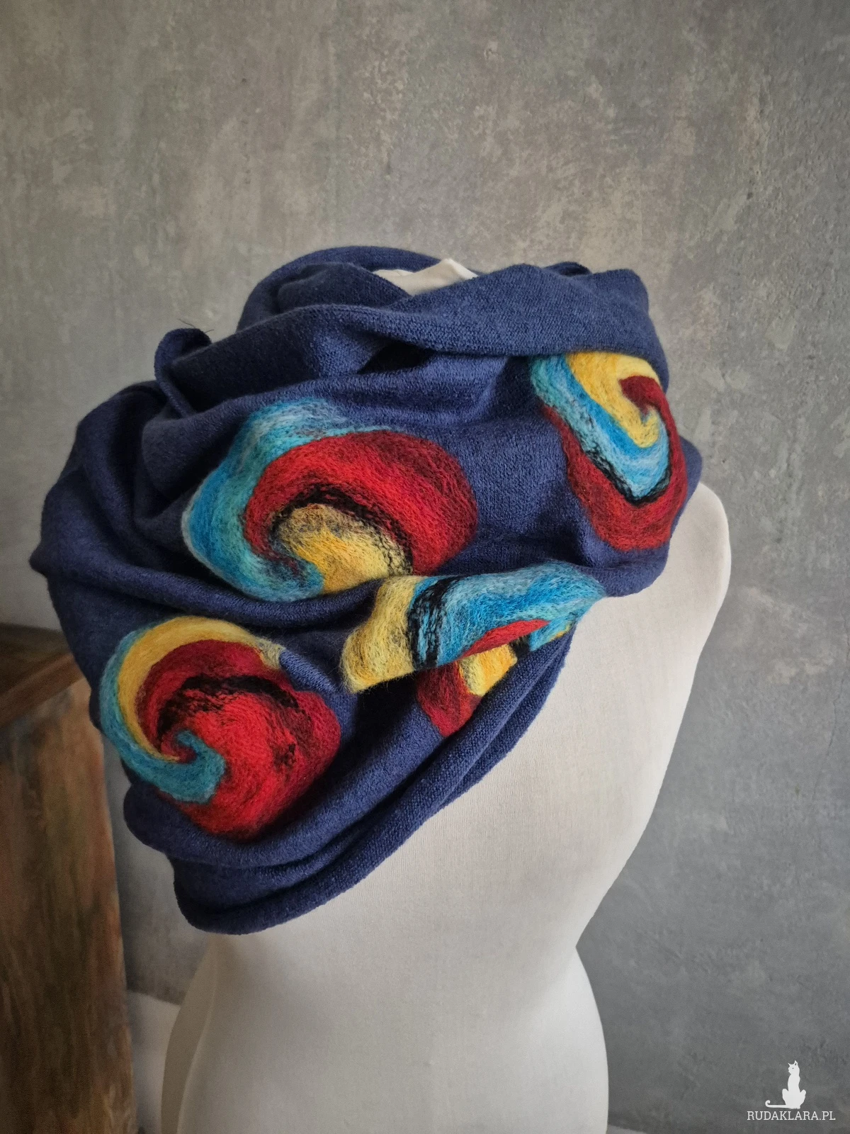 Super prezent na dzień mamy niebieski filcowany wełniany miły i ciepły komin handmade, zdjęcie trochę przekłamuje kolor ten granat jest bardziej podobny do jeansu tak jak na zdjęciu dołączonym przykładowym- tuba, owijany dwa razy, filcowany wełną merynosów, bardzo ciepły i miły, doskonały na prezent, fantastyczny na codzienne noszenie, zwraca uwagę, dodaje koloru, nie zginiesz w tym kominie na ulicy, pojedyncze egzemplarze, polecam bestseller,czas oczekiwania tydzien