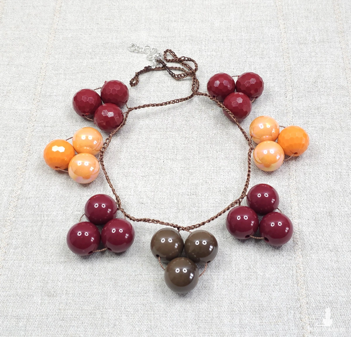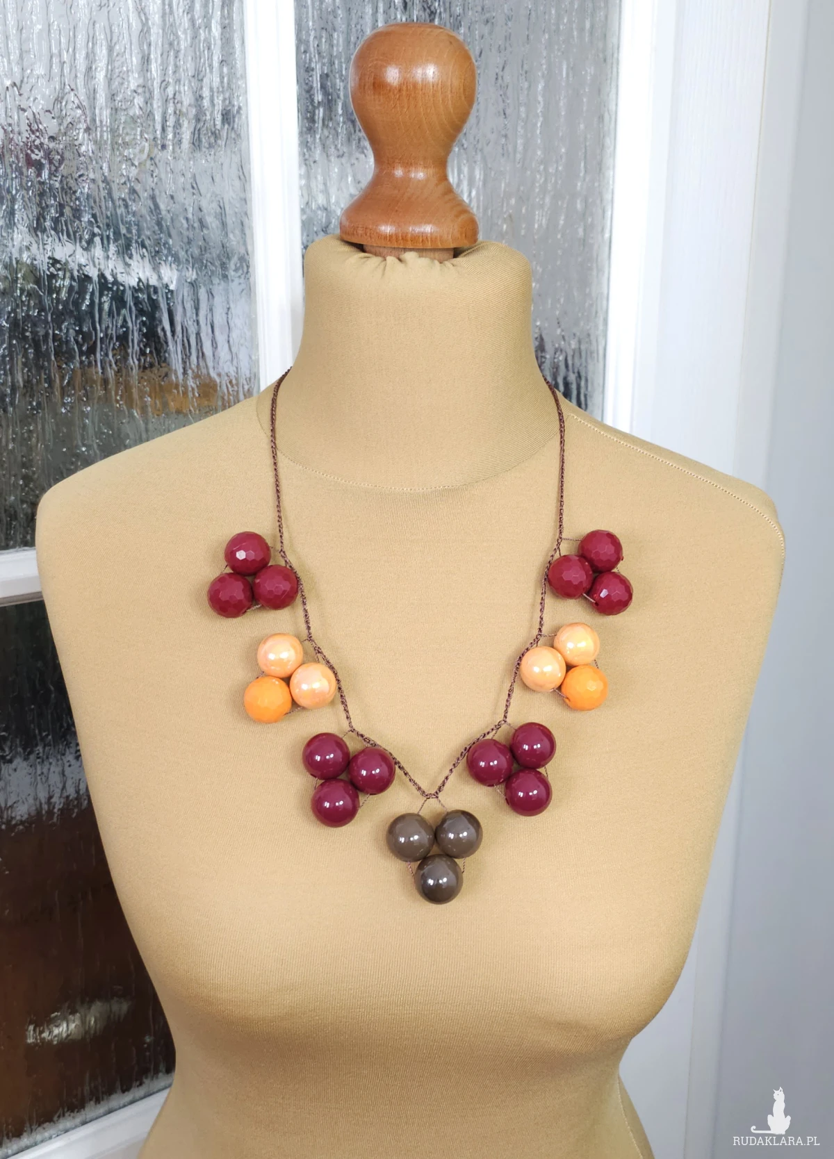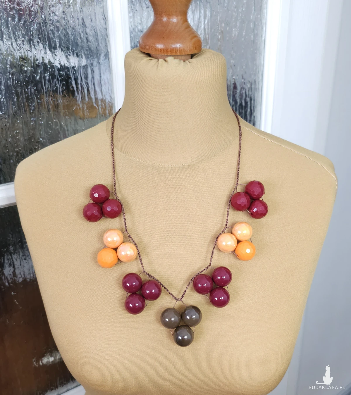 Naszyjnik doskonale pasuje do casualowych, artystycznych i retro stylizacji. Jest lekki i wygodny w noszeniu pomimo swojej objętości. Idealny, aby ożywić sweter, prostą bluzkę lub sukienkę.