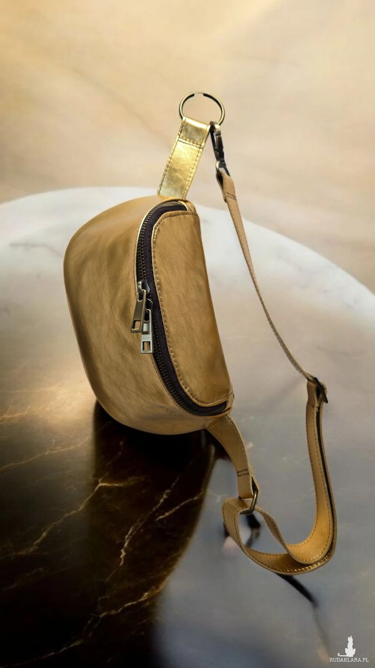 W całości wykonana z wysokogatunkowej włoskiej skóry laminowanej w oryginalnym złotym kolorze.