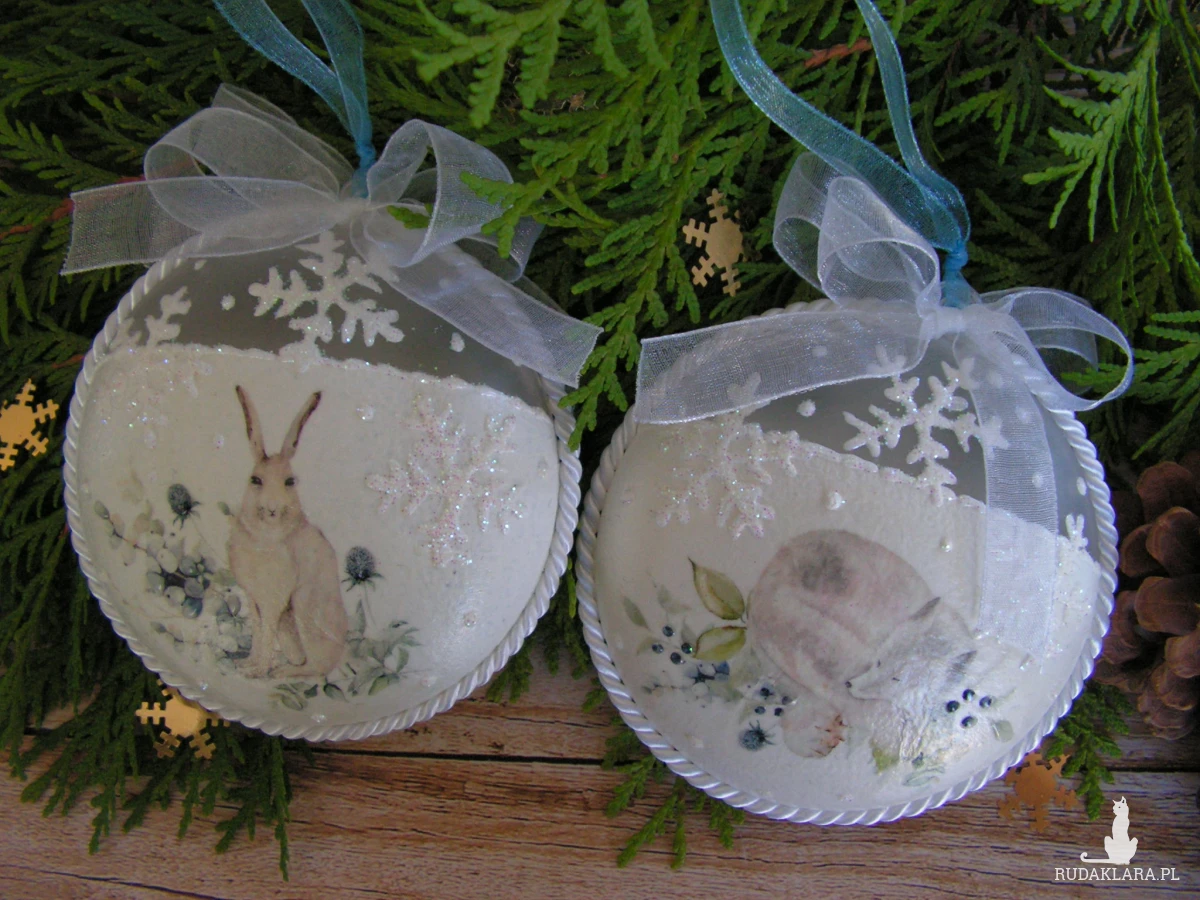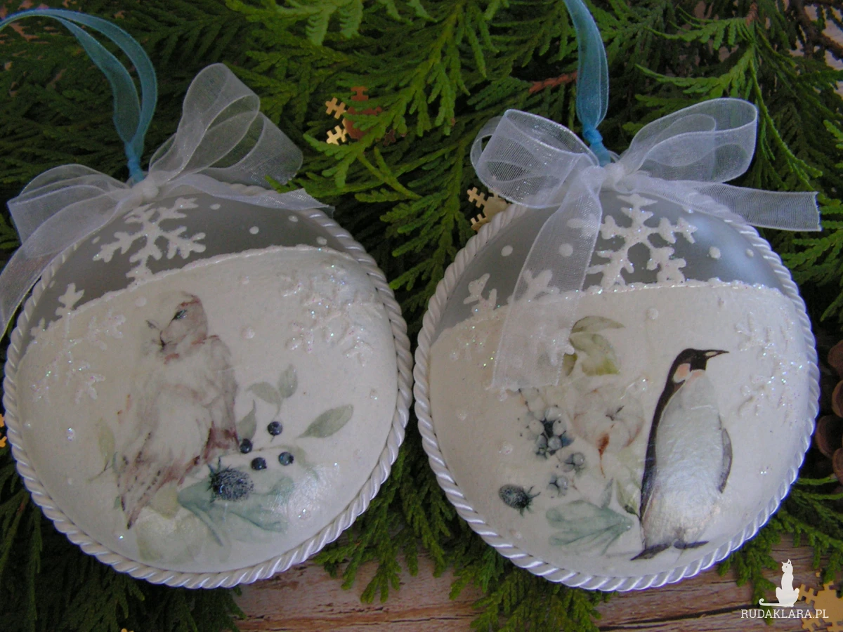 Dwa akrylowe medaliony na choinkę - "Mroźna zima".