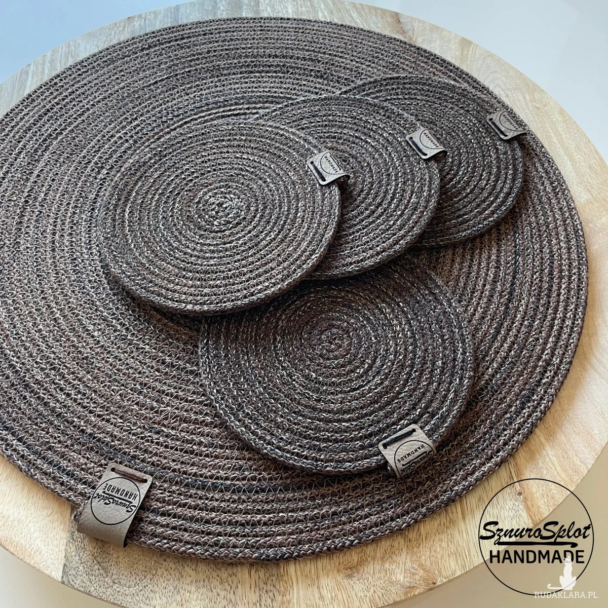 Podkładki ze sznurka uszyte w kolorach brązowego melanżu (nie zamieszczony we wzorniku, ale dostępny)