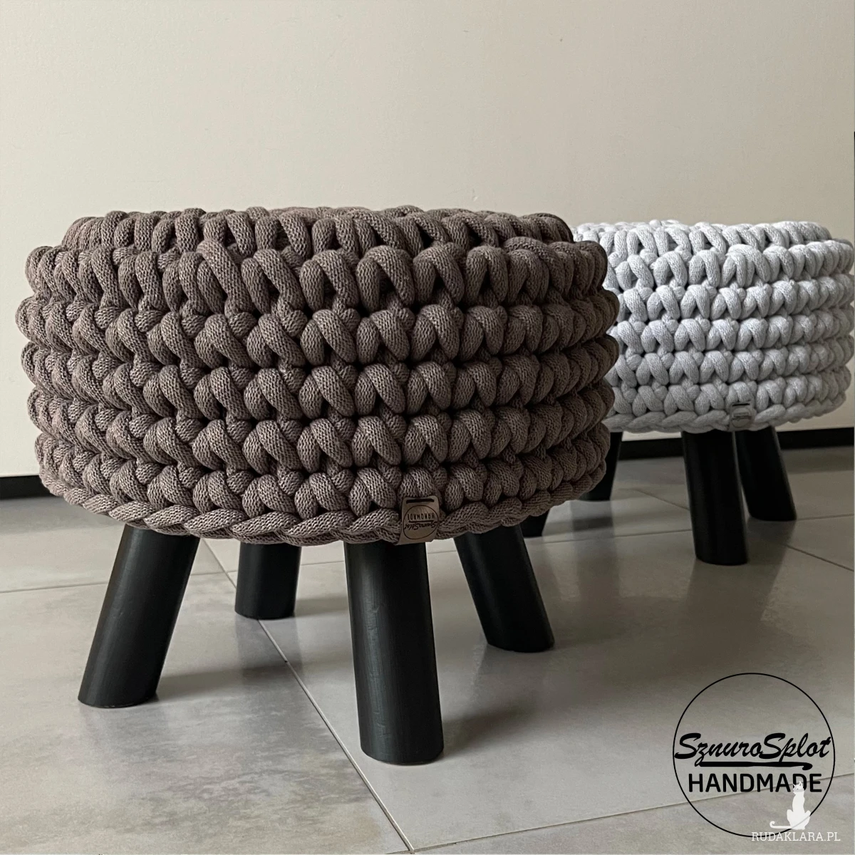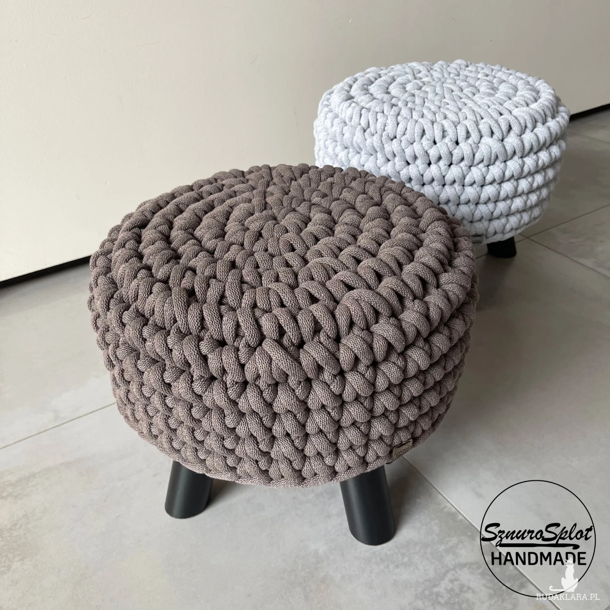 Stołek w stylu skandynawskim z pokryciem z grubego sznurka bawełnianego.